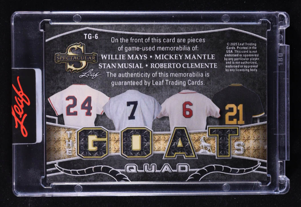 Willie Mays / Mickey Mantle / Stan Musial / Roberto Clemente 2025 Leaf Spectacular The GOATs Spectrum Purple #TG6 #5/7