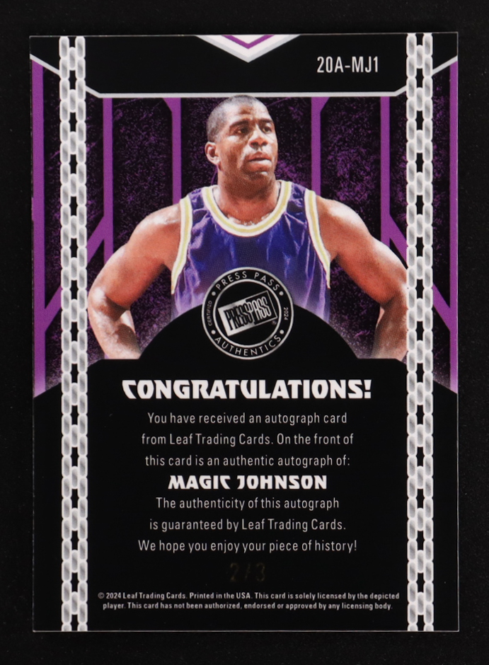 Magic Johnson 2024 Leaf Collective '00 Press Pass Autographs Shimmer Black #20AMJ1 #2/3