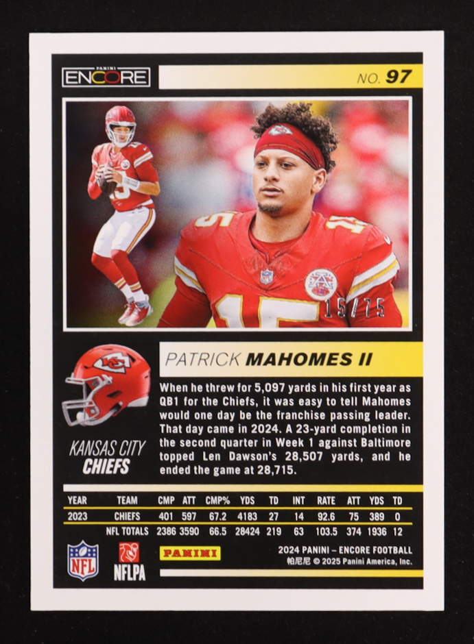 Patrick Mahomes II 2024 Panini Encore Purple #97 #15/75