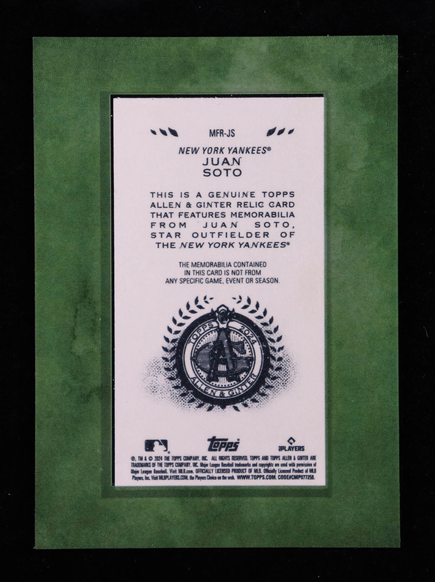 Juan Soto 2024 Topps Allen and Ginter Mini Framed Relics #MFRJS
