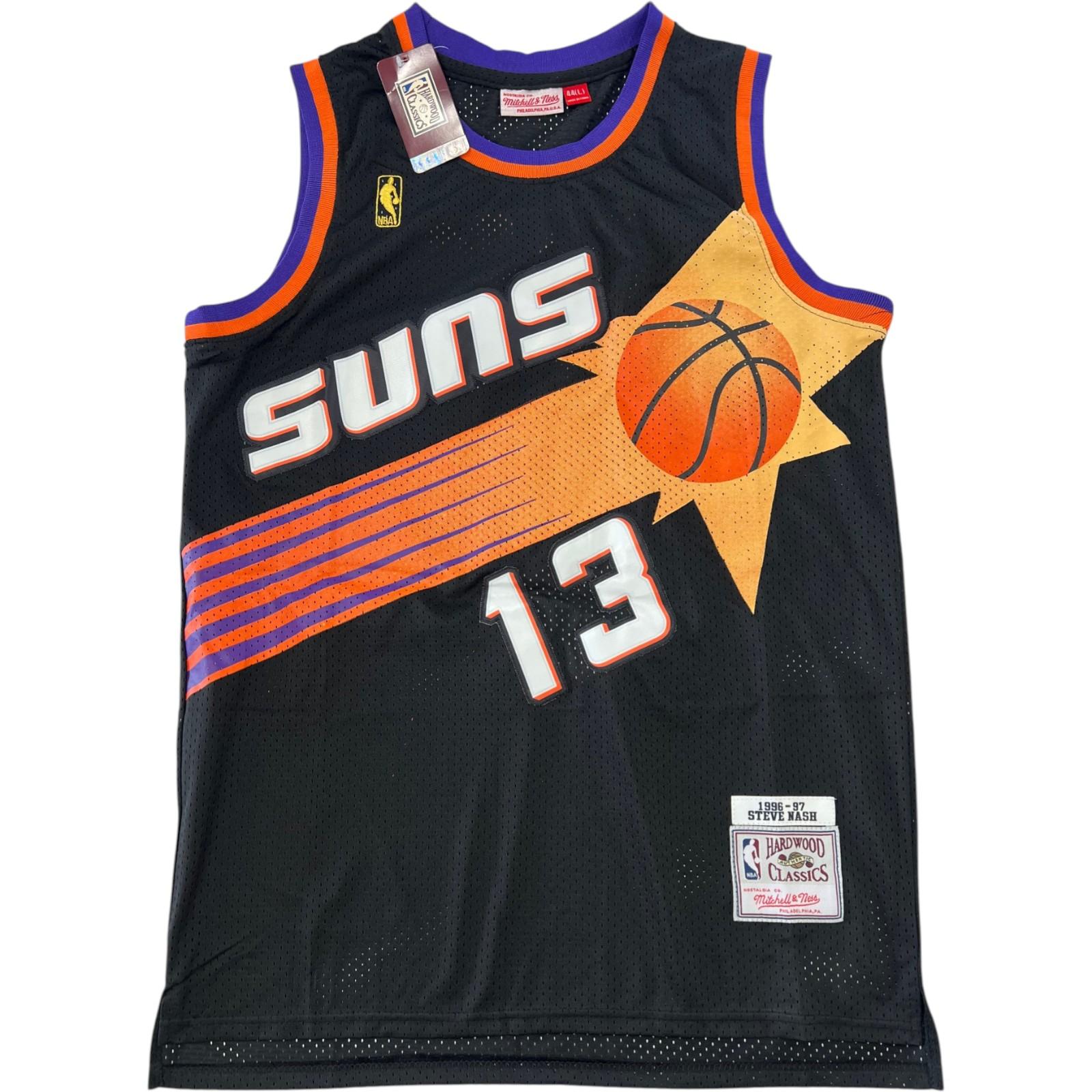 Mitchell & Ness jersey. Everything sewn on, size 44. Hand-signed by Steve Nash (Phoenix Suns, HOF).