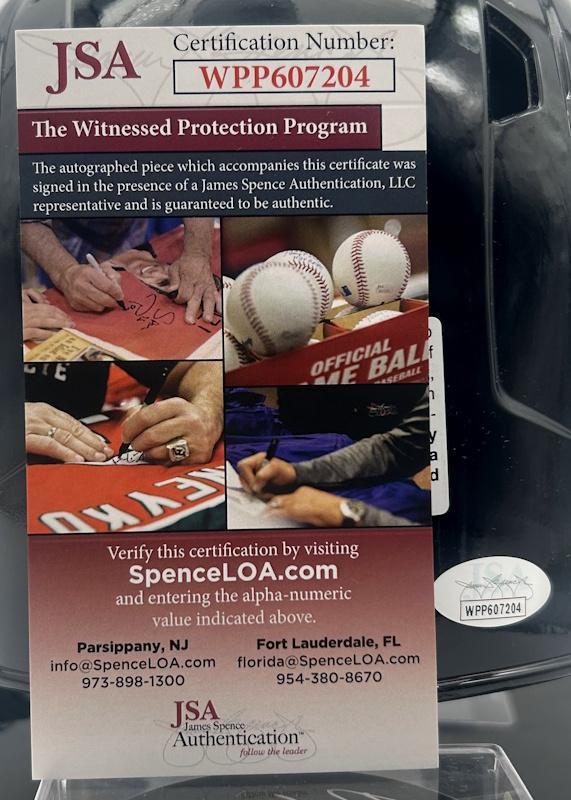 The autograph includes an official JSA hologram and COA for authenticity purposes. The signing of this item was witnessed by JSA.