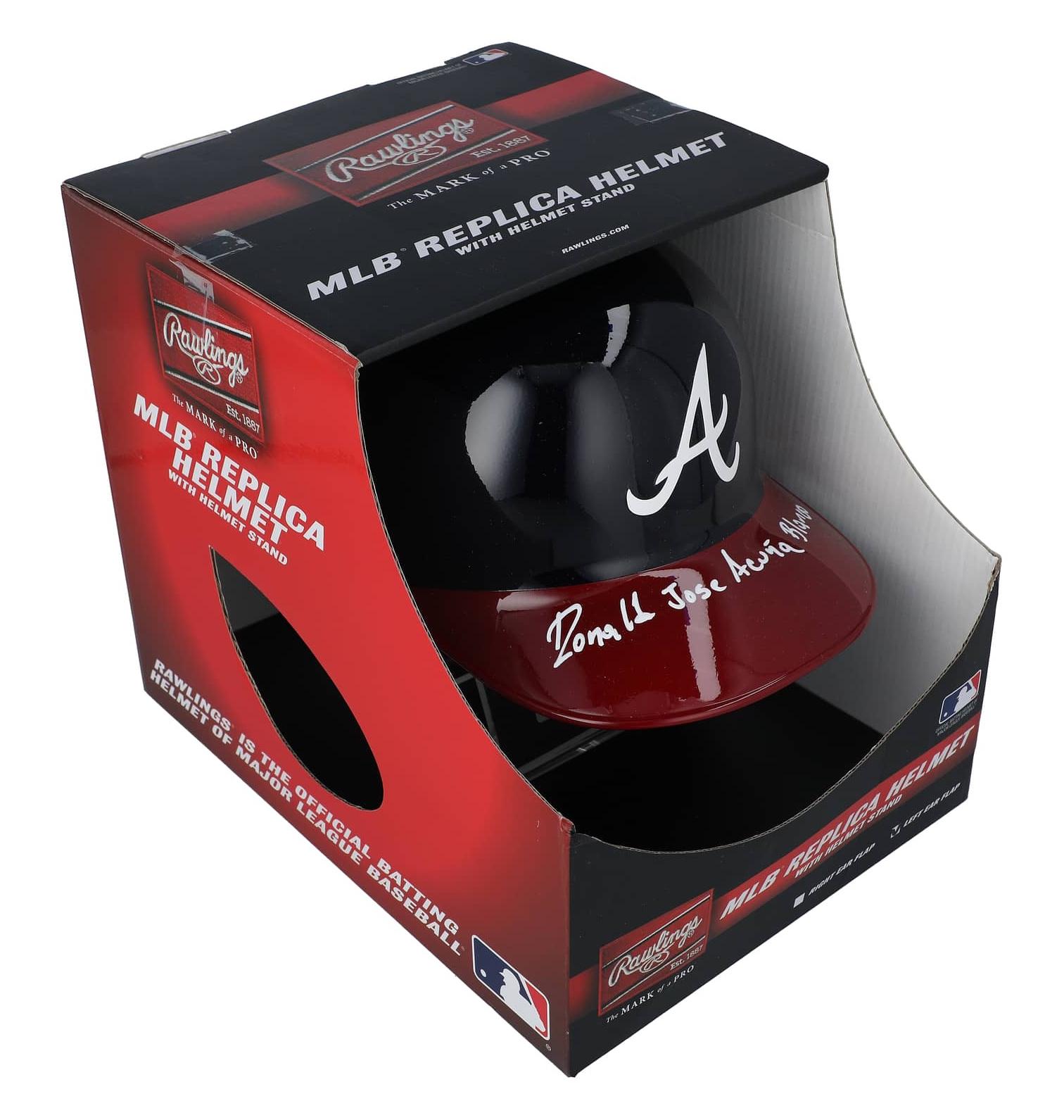 Rawlings Atlanta Braves full-size replica batting helmet has been hand-signed by Ronald Jose Acuna Blanco.