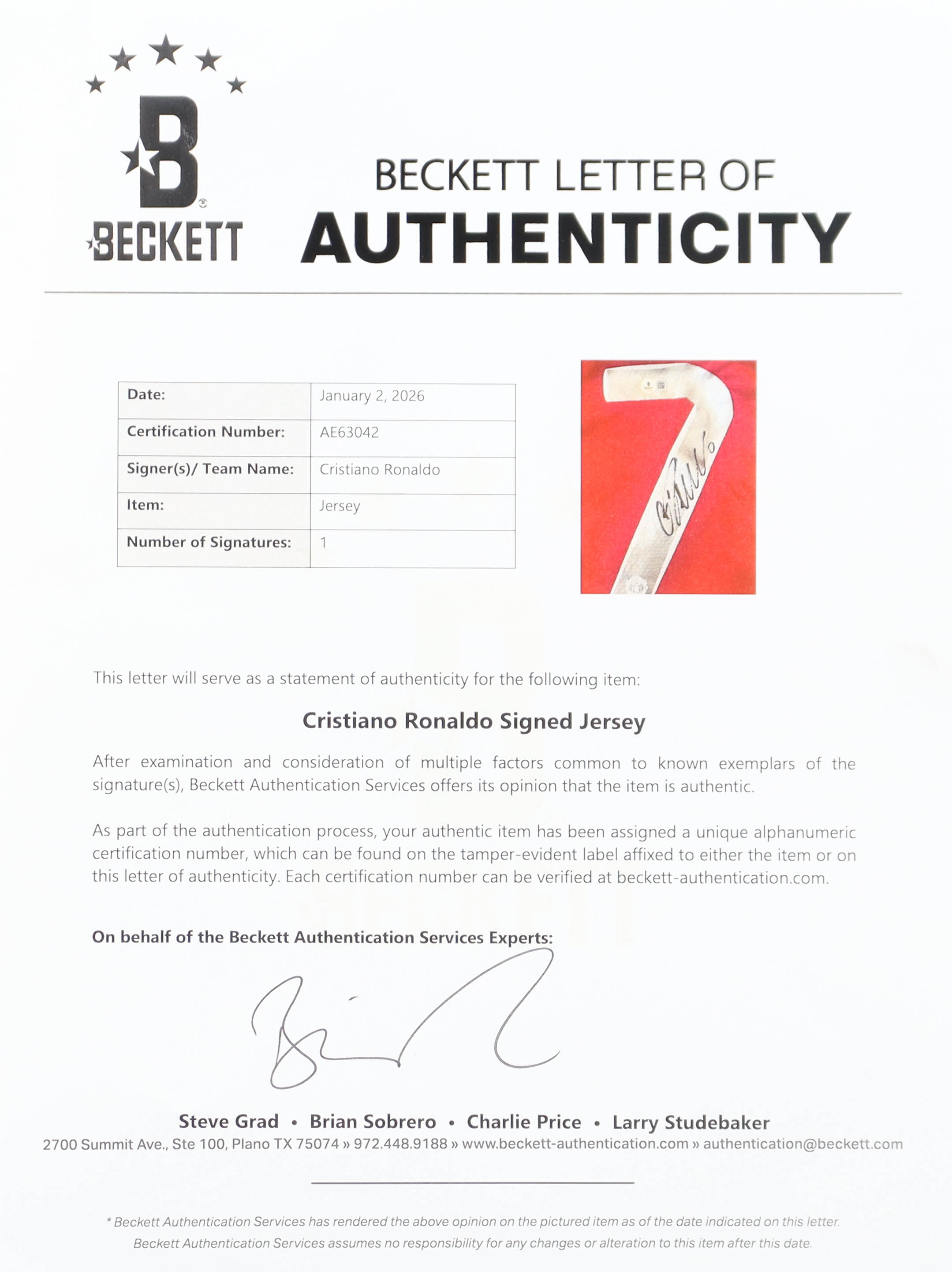 Nike jersey with everything pressed on, size L. Hand-signed by Cristiano Ronaldo.