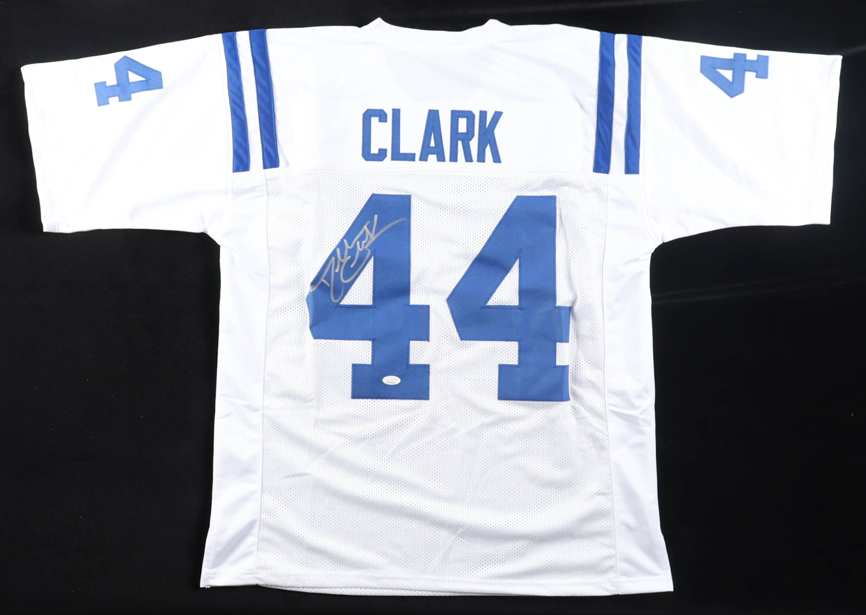 Custom jersey with everything sewn on, size XL. Hand-signed by Dallas Clark.