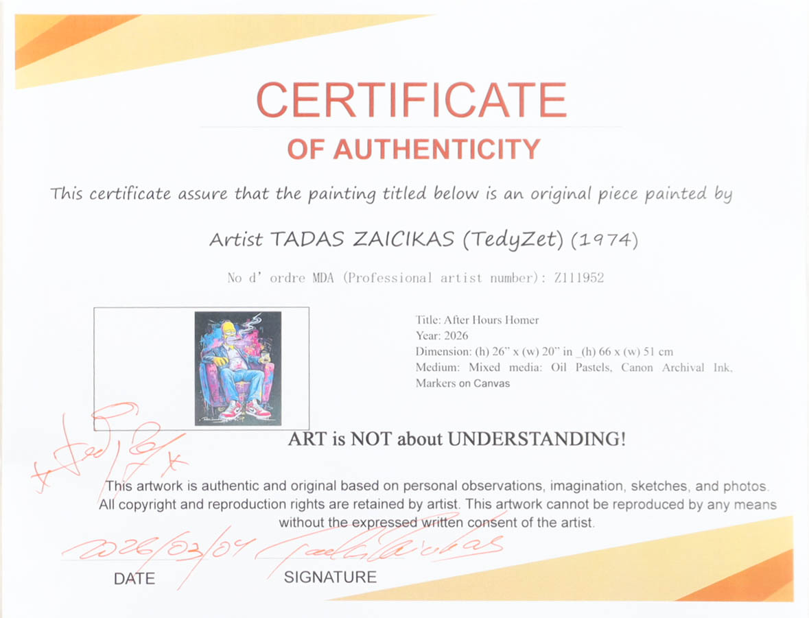 "After Hours Homer" 2026 19x26 Original Painting on Canvas by Tadas Zaicikas | TedyZet (Zaicikas)