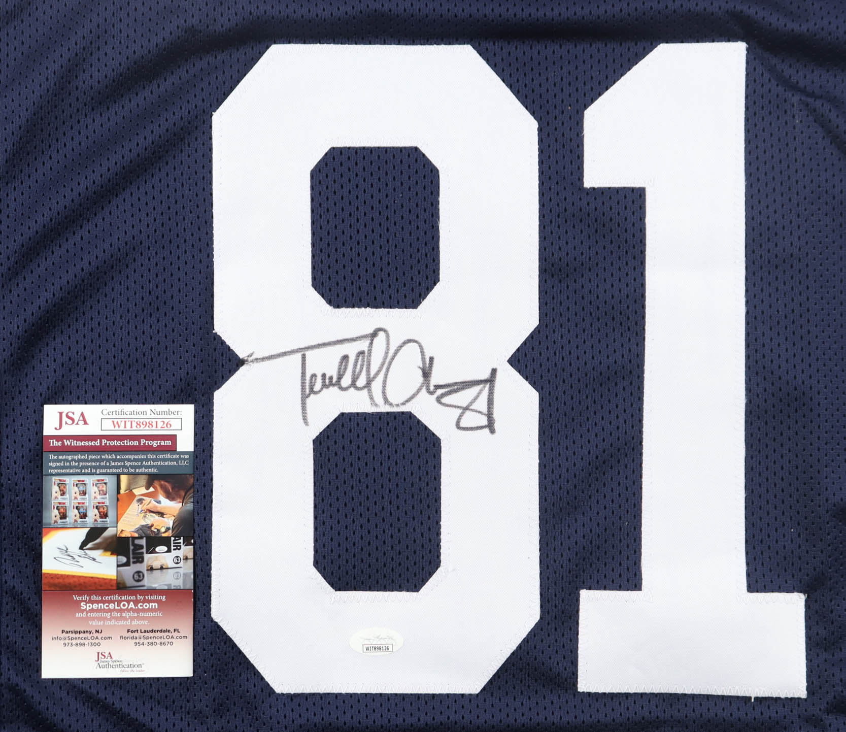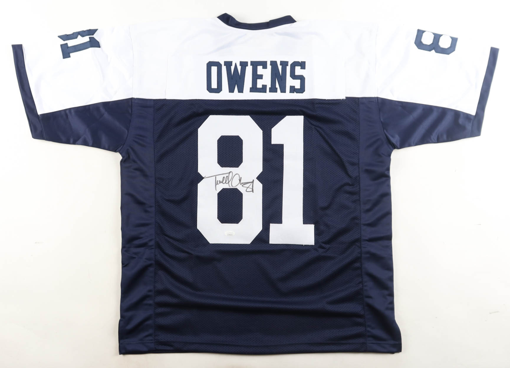 Custom jersey with everything sewn on, size XL. Hand-signed by Terrell Owens (HOF). Please note, glue is visible through the reverse number.