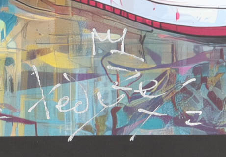 This original painting of acrylic, enamel and spray paint on canvas measures 19" x 26" in size and has been hand-signed and titled by the artist, Tadas Zaicikas (TedyZet).