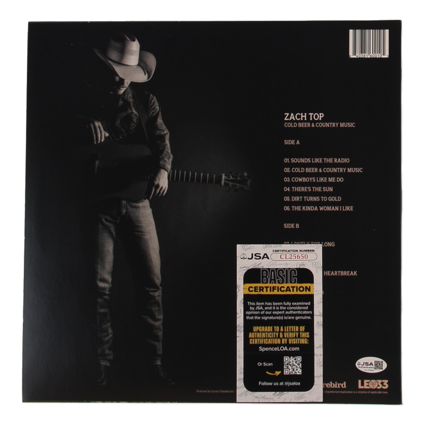 Zach Top Signed "Cold Beer & Country Music" Vinyl Record Album Cover (JSA)