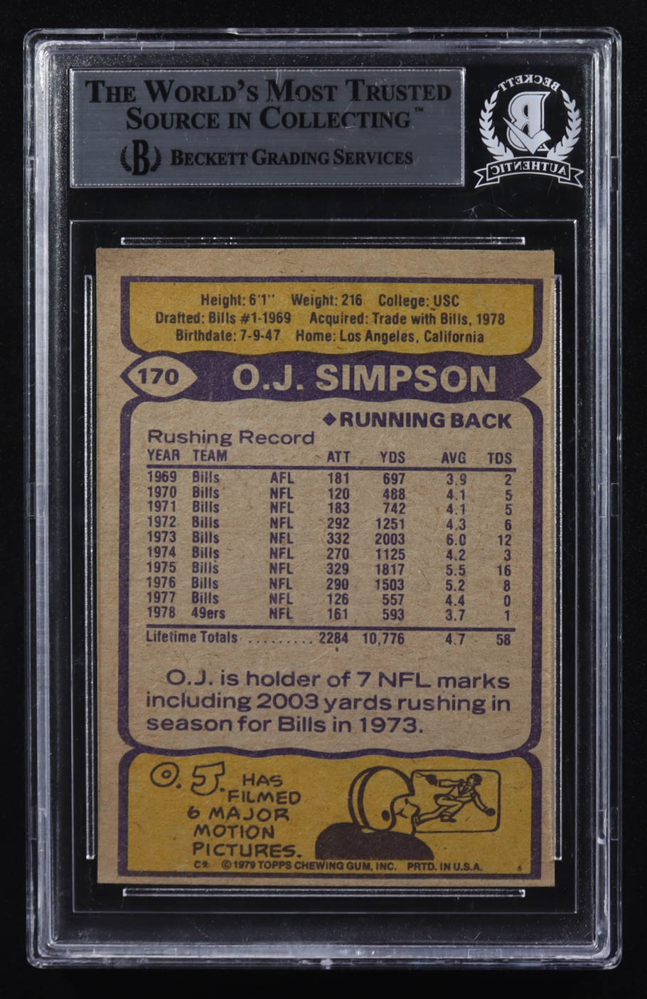 O.J. Simpson Signed 1979 Topps #170 (BGS Encapsulated)