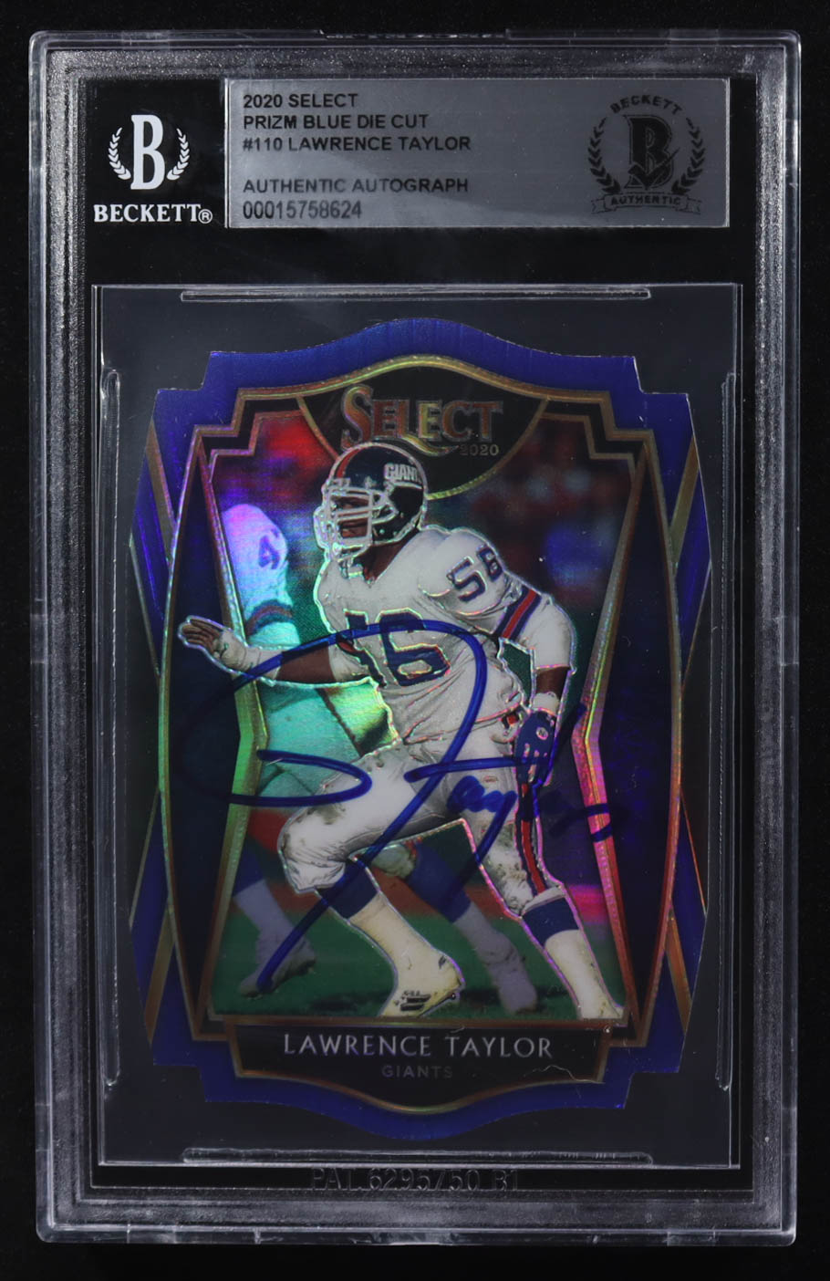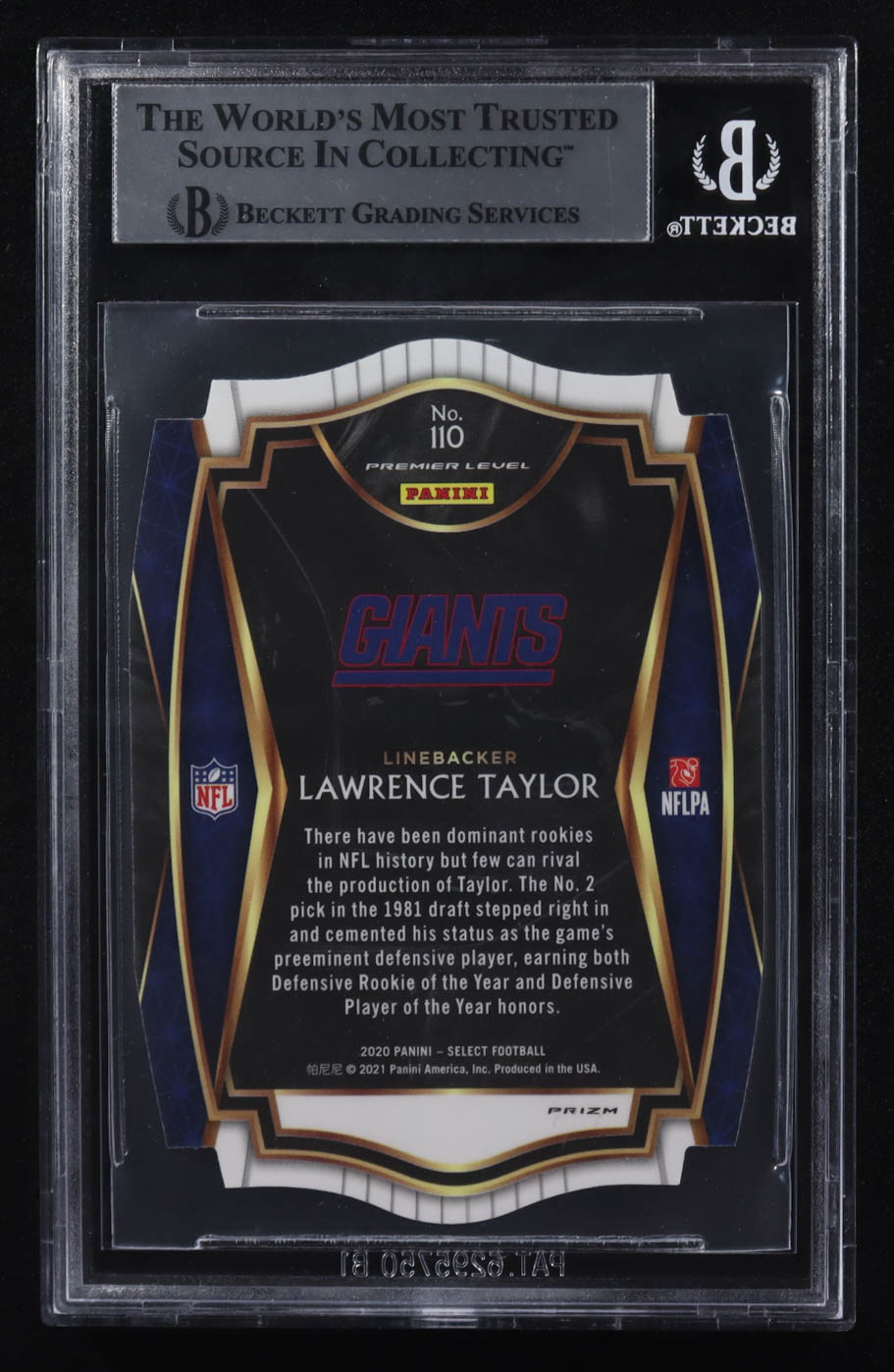 Lawrence Taylor Signed 2020 Select Prizm Blue Die Cut #110 (BGS Encapsulated)