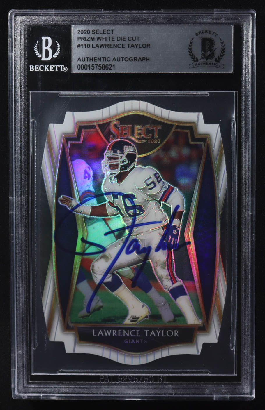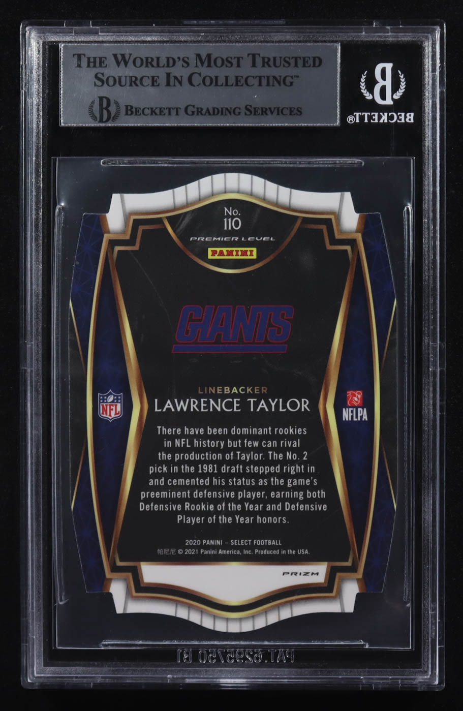 Lawrence Taylor Signed 2020 Select Prizm White Die Cut #110 (BGS Encapsulated)
