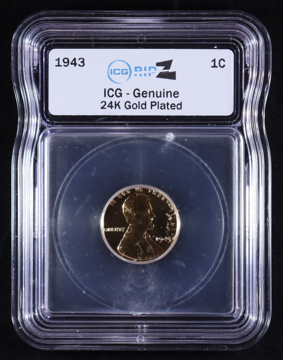 1943 Lincoln Wheat 1C Cent - 24kt Gold Plated Limited Edition (ICG Genuine)