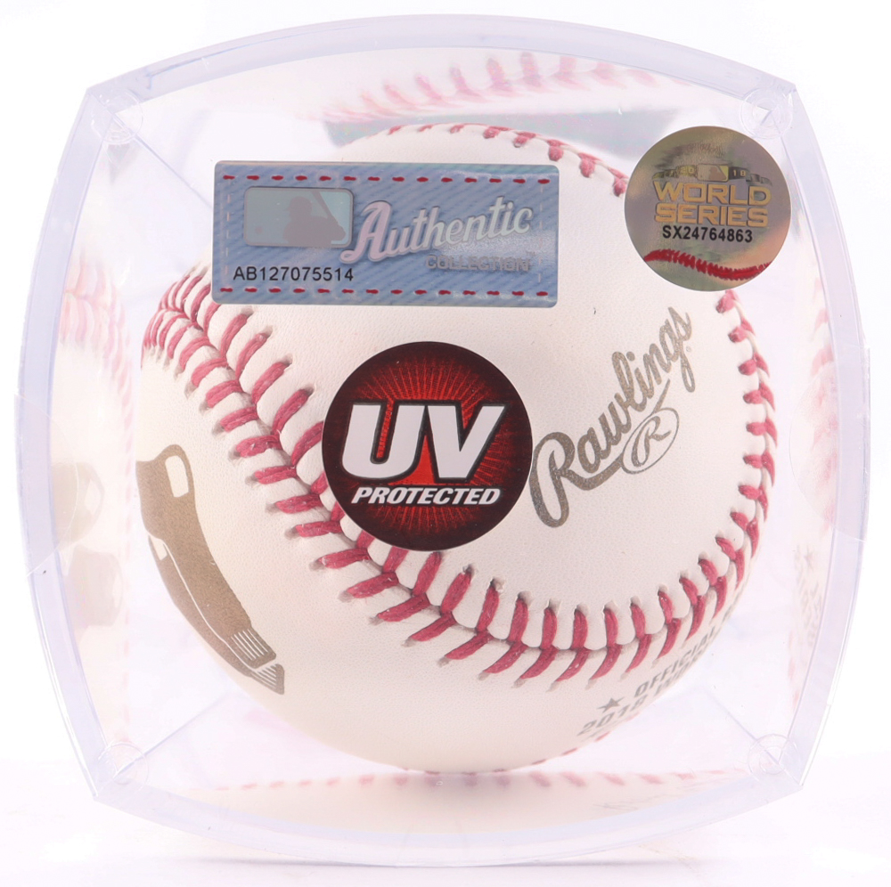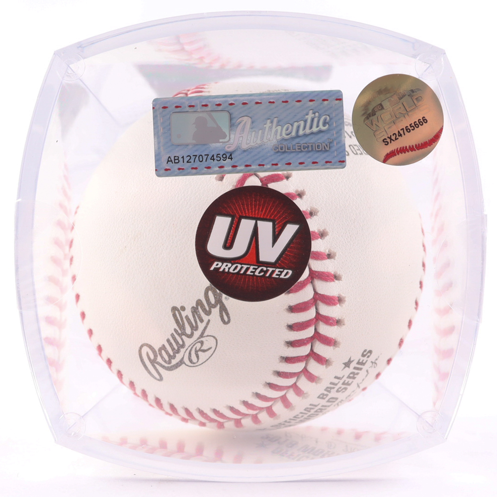 Rawlings Official 2018 World Series Logo Baseball. Note that the item is unsigned. Please see photos for more details regarding the condition of the item. The display case is included in the listing as shown above. Note that the item is unsigned and is factory sealed.