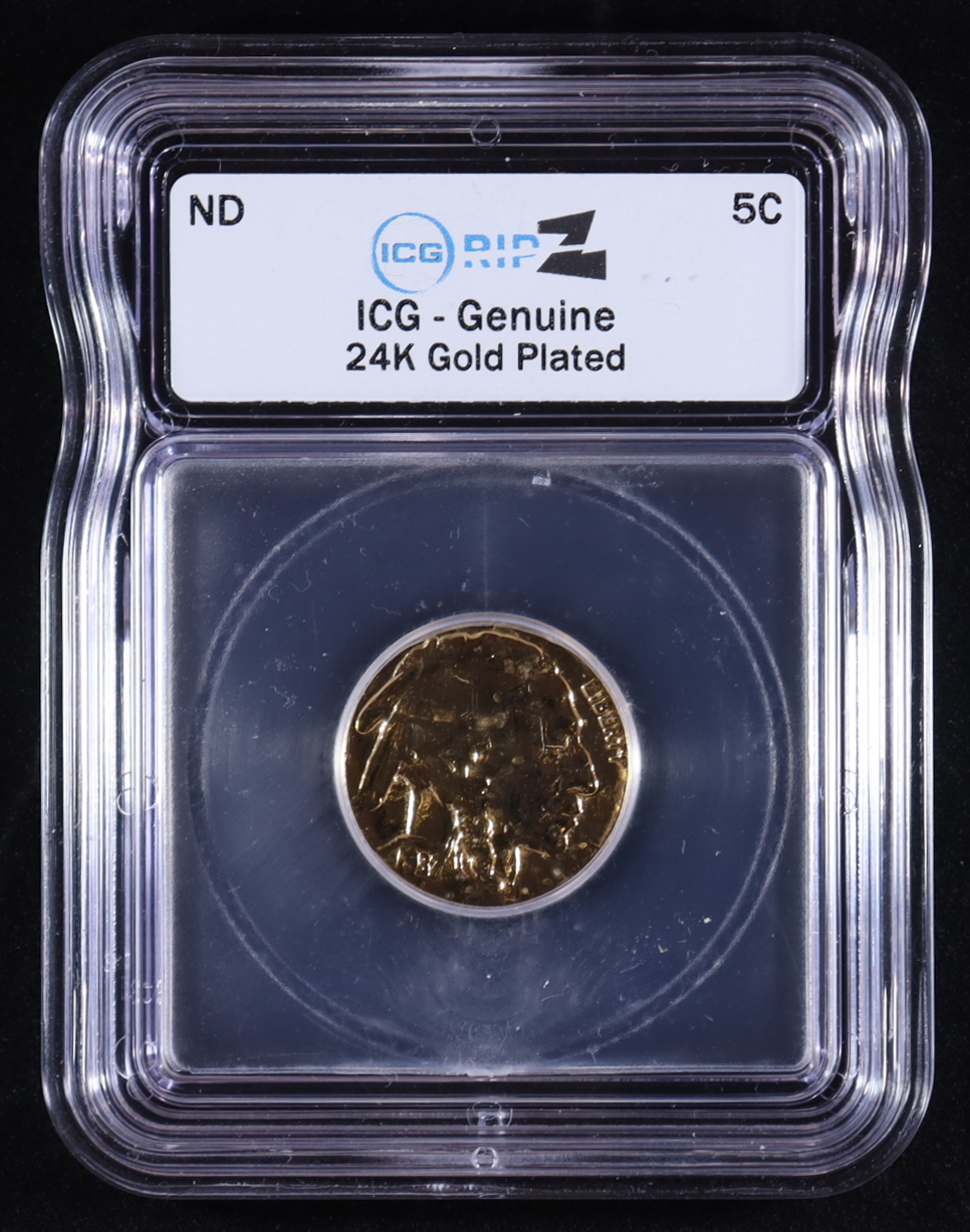 (1913-1938) Buffalo 5C Nickel - 24kt Gold Plated Limited Edition (ICG Genuine)