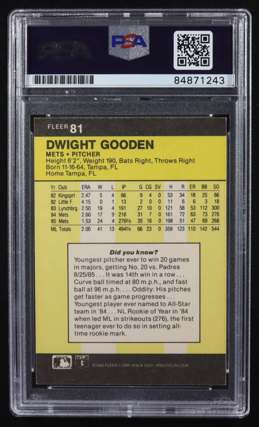 Dwight Gooden Signed 1986 Fleer #81 Inscribed "86 W.S. Champs" (PSA Encapsulated)