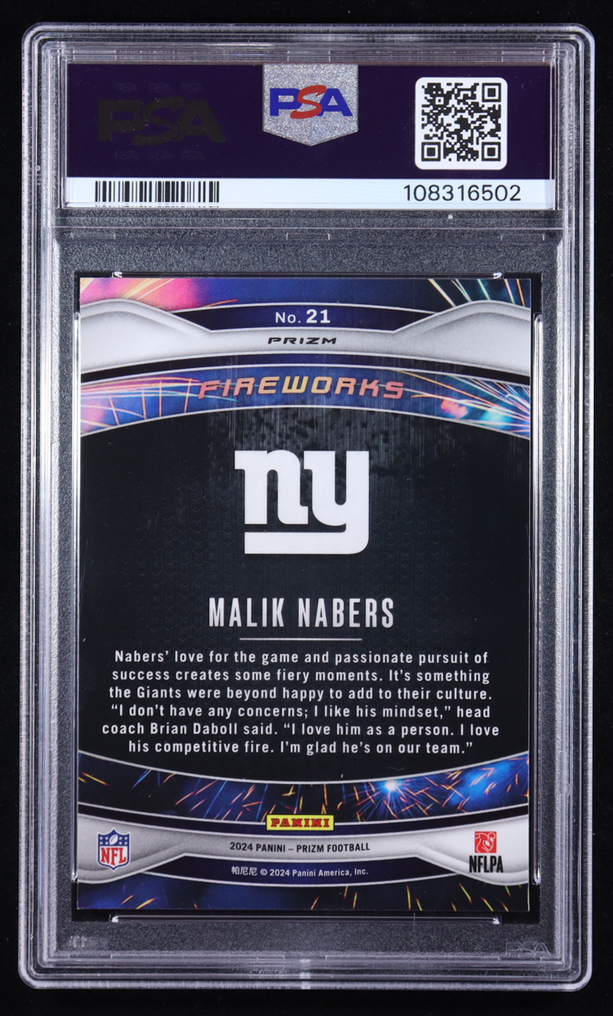 Malik Nabers 2024 Panini Prizm Fireworks Prizms Green #21 RC (PSA 10)