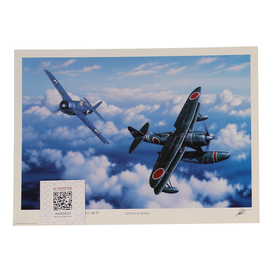 Lithograph measures approximately 11.5" x 16" in size. Hand-signed and inscribed by Joe Foss. Lithograph is also signed by artist Stan Stokes.