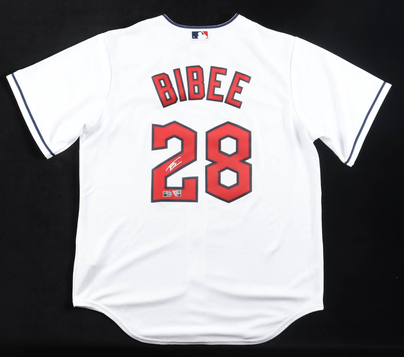 Nike jersey with everything pressed on, size L. Hand-signed by Tanner Bibee (Cleveland Guardians).