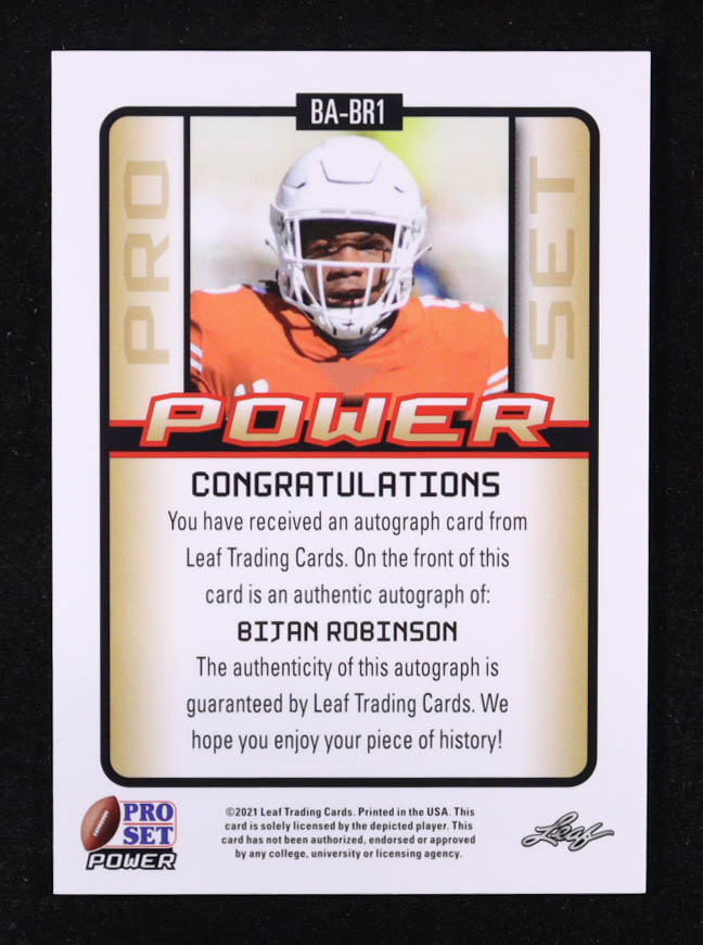 Bijan Robinson 2021 Leaf Pro Set Power Autographs Bronze Holofoil #BABR1 RC