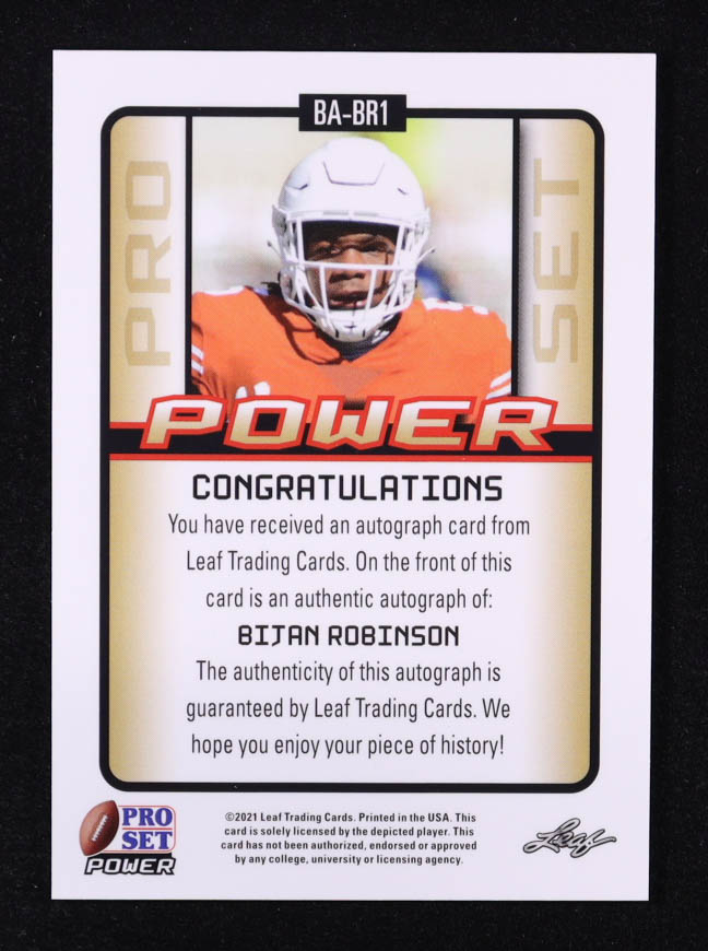 Bijan Robinson 2021 Leaf Pro Set Power Autographs Bronze Holofoil #BABR1 RC