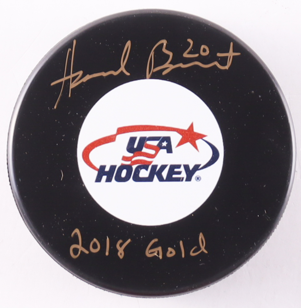 Hannah Brandt Signed Team USA Logo Hockey Puck Inscribed "2018 Gold" (Premium Autographs)