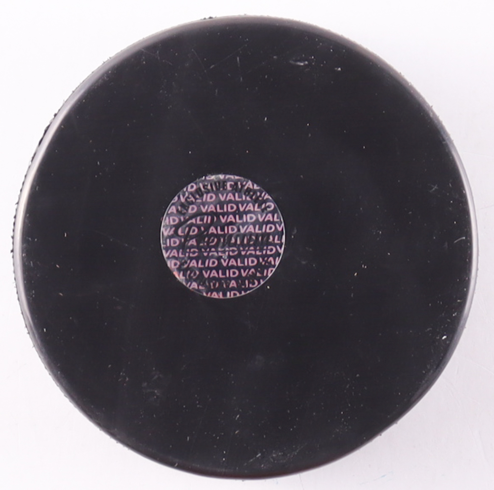 Team USA logo hockey puck has been hand-signed and inscribed by Hannah Brandt.
