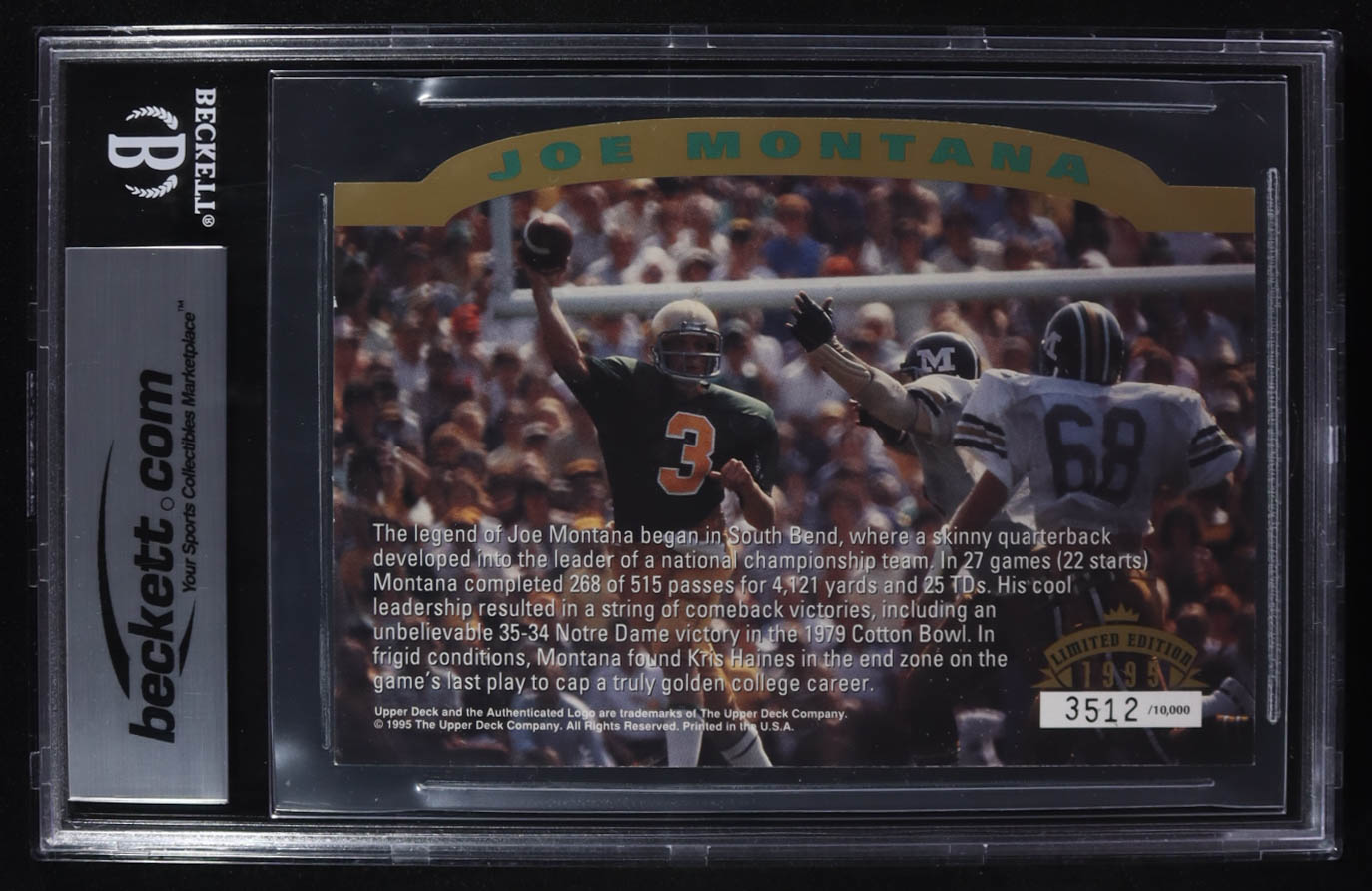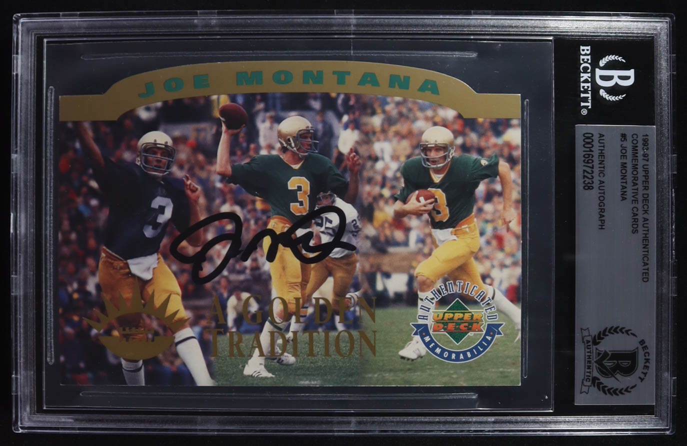 Joe Montana Signed 1993-97 Upper Deck Authenticated Commemorative Cards Oversized #5 #3512/10000 (BGS Encapsulated)