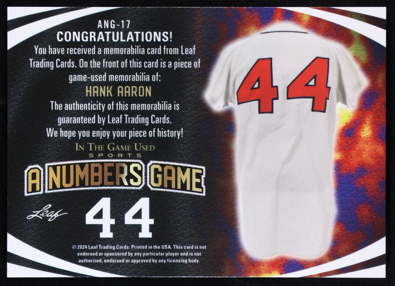 Hank Aaron 2024 Leaf ITG A Numbers Game Rainbow #ANG-17 #8/20