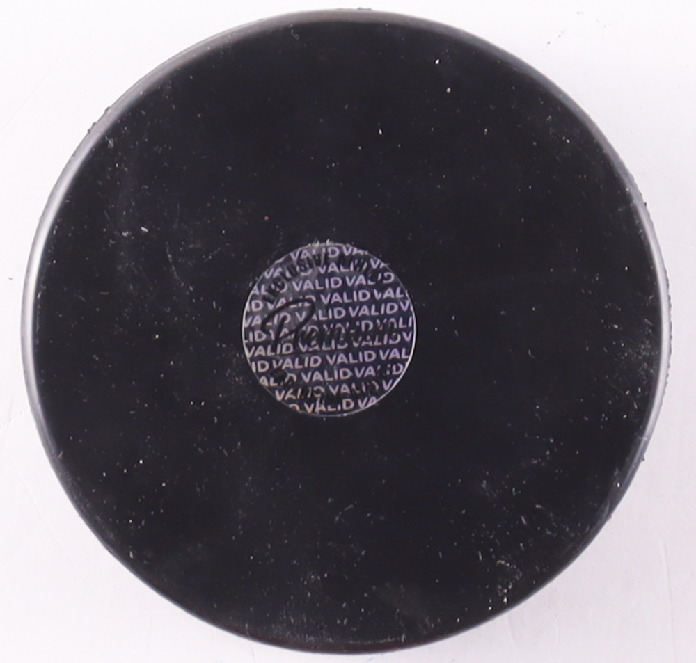 Team USA logo hockey puck has been hand-signed by Alex Carpenter.