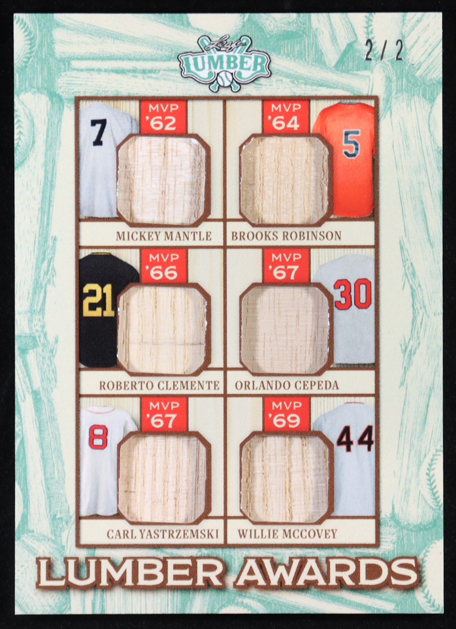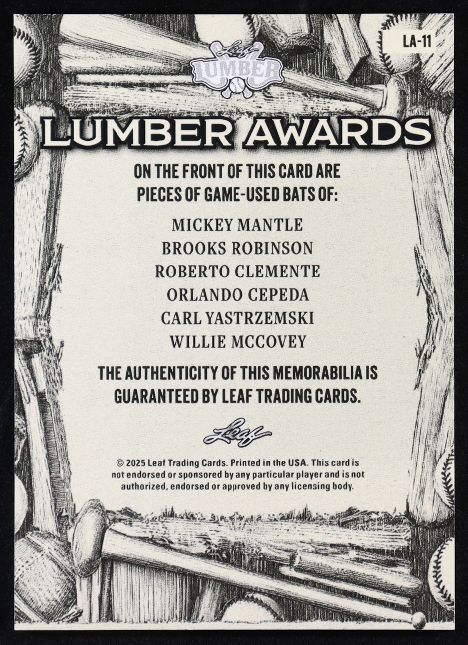 2025 Leaf Lumber Lumber Awards Green #LA11 #2/2 Mickey Mantle/Brooks Robinson/Roberto Clemente/Orlando Cepeda/Carl Yastrzemski/Willie McCovey
