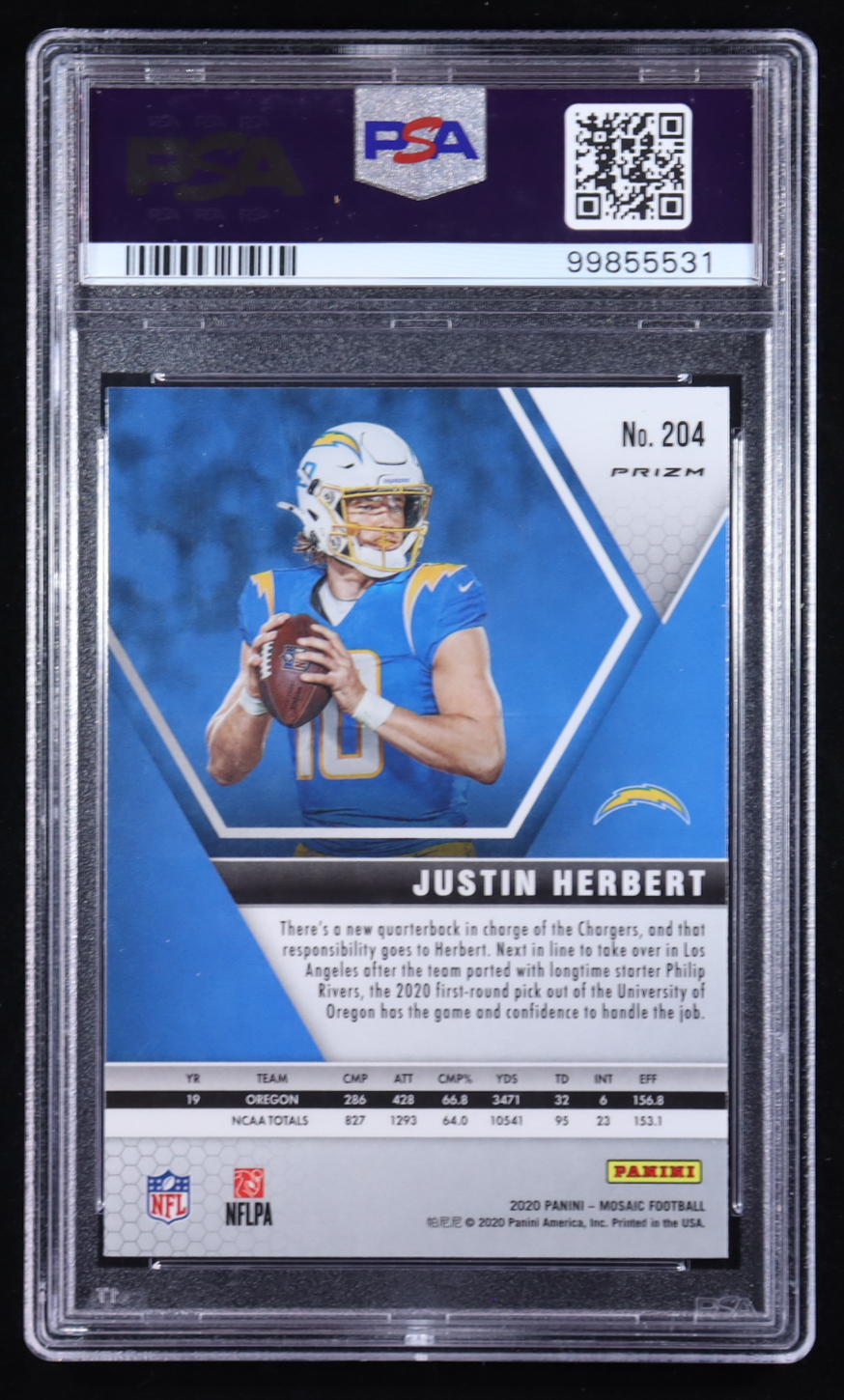 Justin Herbert 2020 Panini Mosaic Mosaic Camo Pink #204 RC (PSA 10)