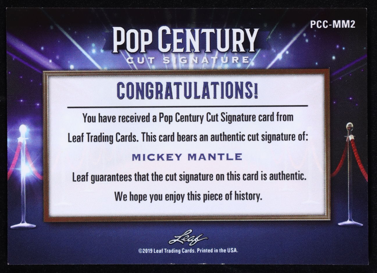 Mickey Mantle 2019 Leaf Pop Century Cut Signature #PCC-MM2