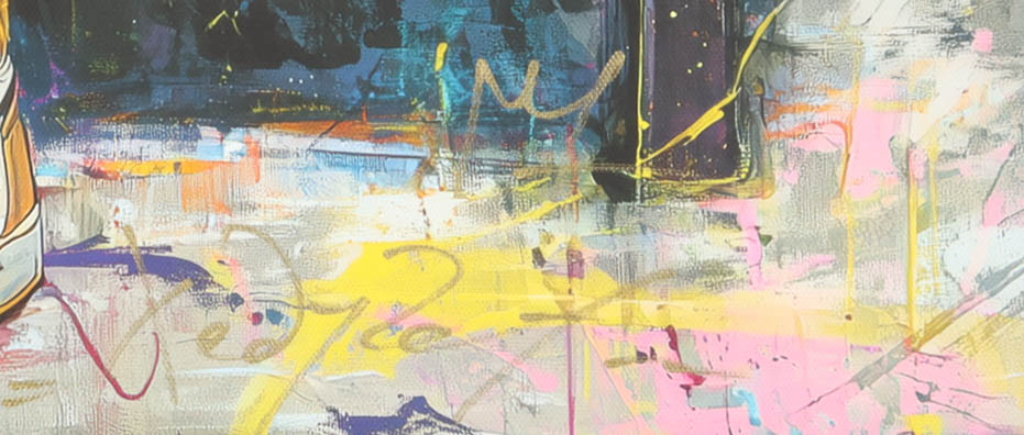 This original painting of acrylic, enamel and spray paint on canvas measures 19" x 26" in size and has been hand-signed and titled by the artist, Tadas Zaicikas (TedyZet).
