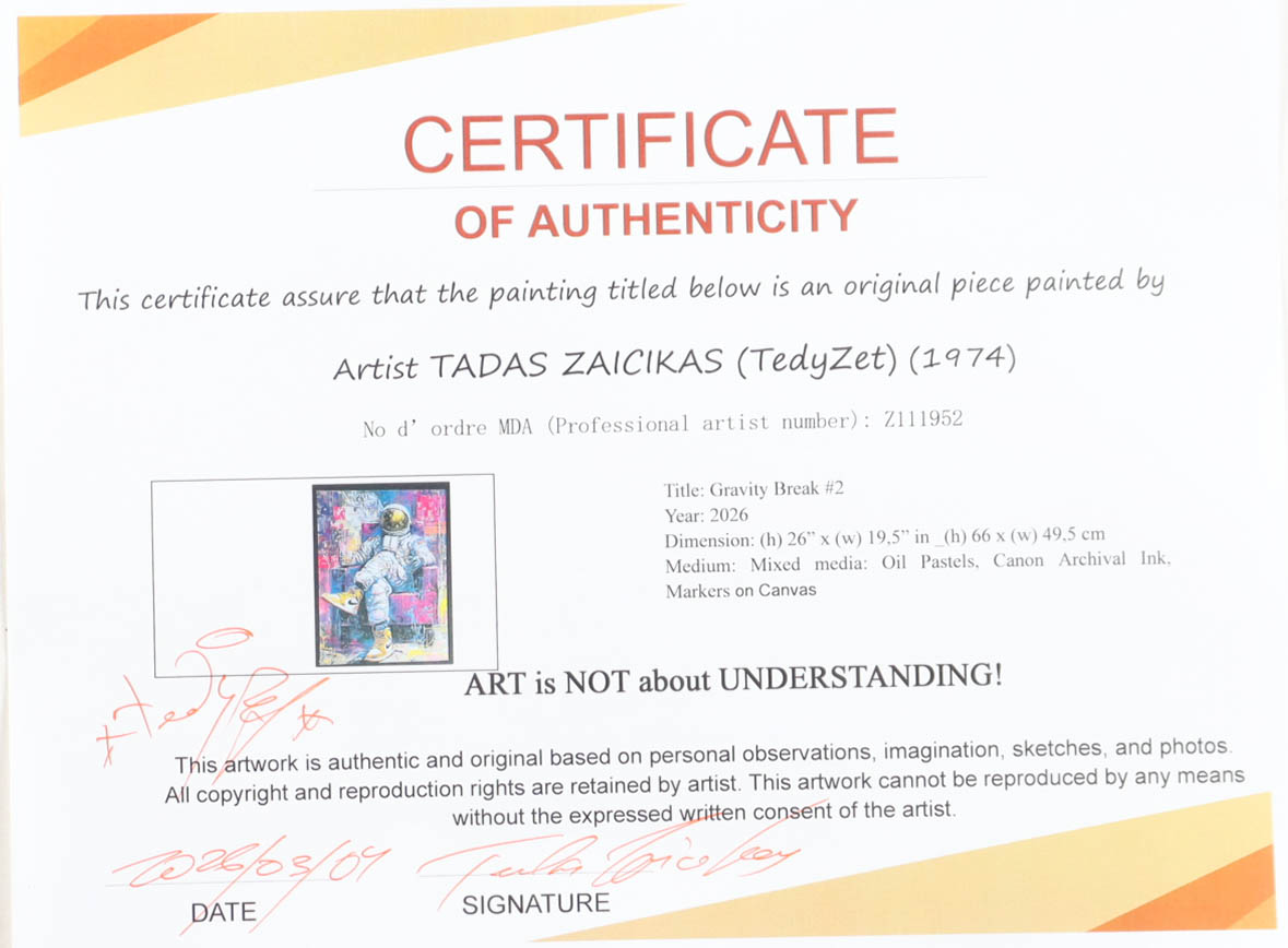 The piece includes an official Tadas Zaicikas COA for authenticity purposes.