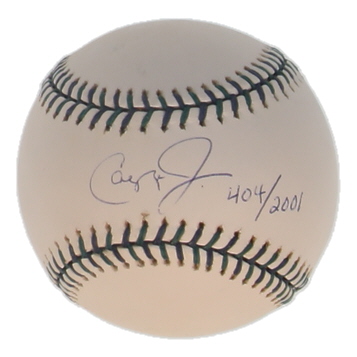 Rawlings 2001 All-Star Game baseball. Hand-signed by Cal Ripken Jr. (Baltimore Orioles, HOF). Limited edition hand-numbered #404/2001.