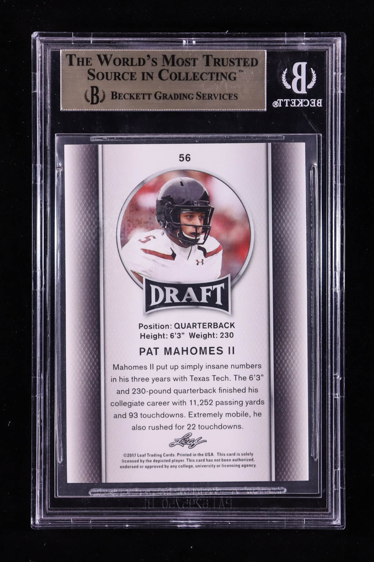 Patrick Mahomes II 2017 Leaf Draft Gold #56 RC (BGS 9.5)