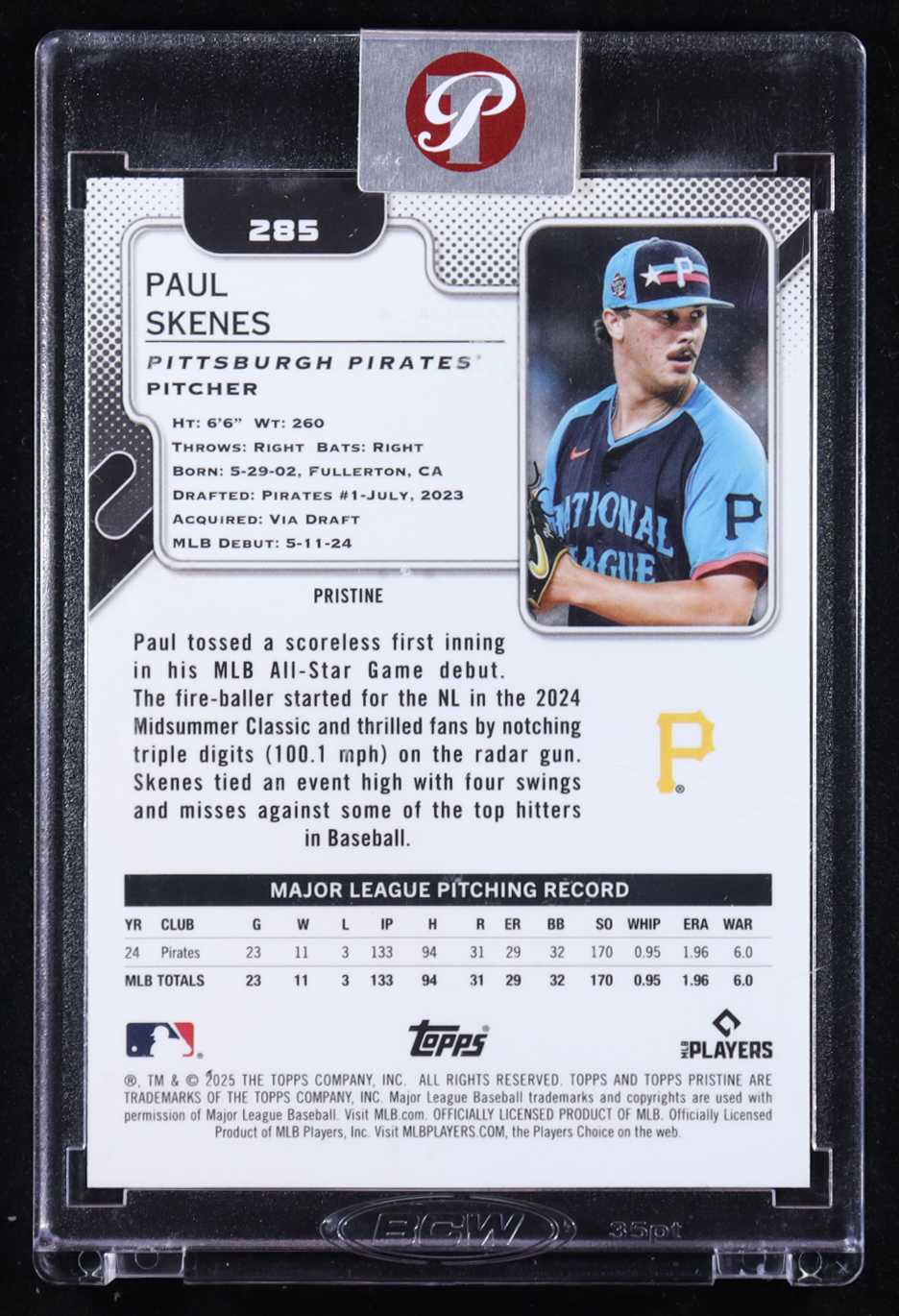 Paul Skenes 2025 Topps Pristine Aqua Pristine Refractors #285 #005/199