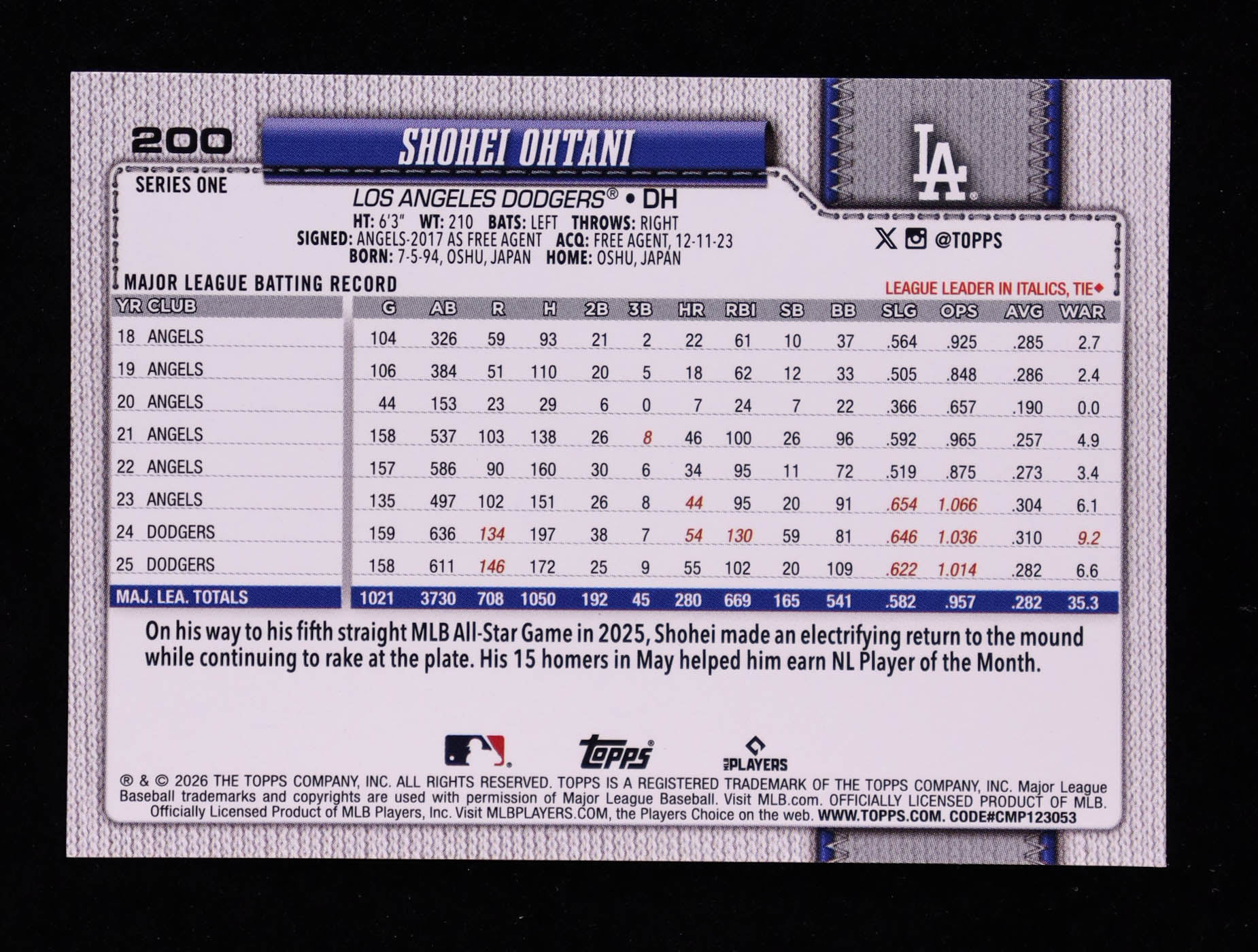 Shohei Ohtani 2026 Topps Pink Holo Foil #200