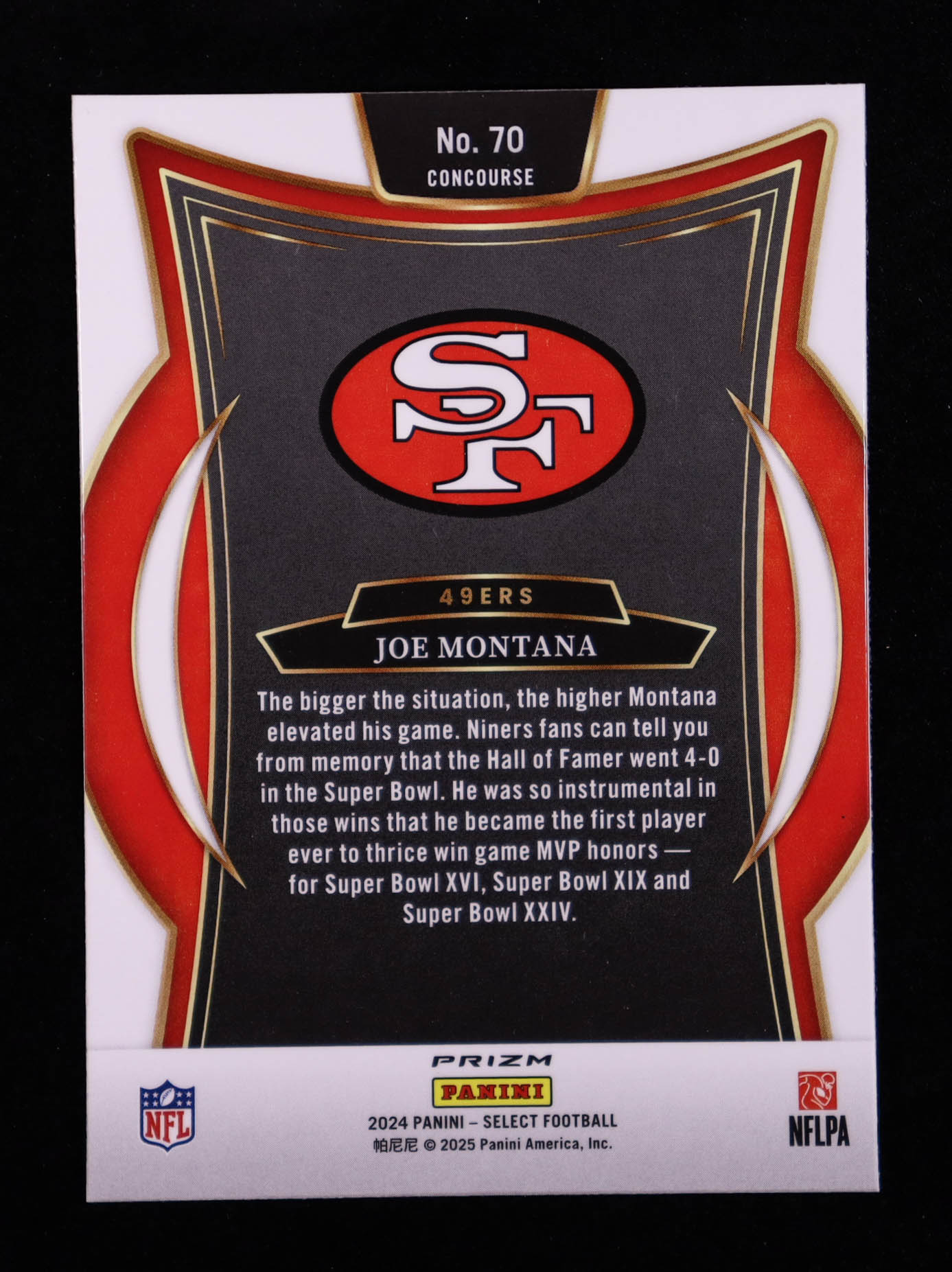 Joe Montana 2024 Select Prizm Zebra Shock #70