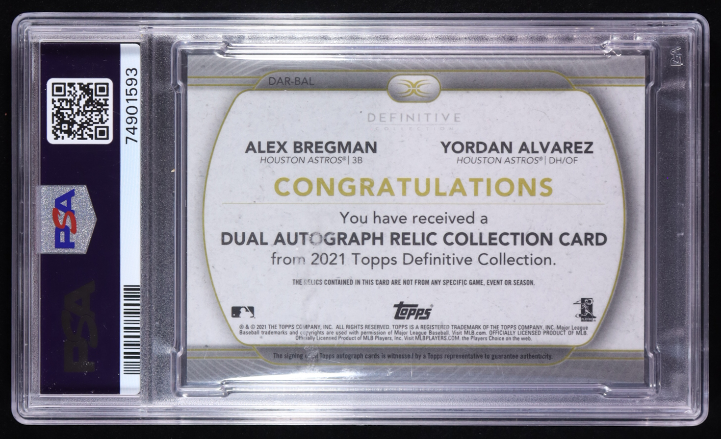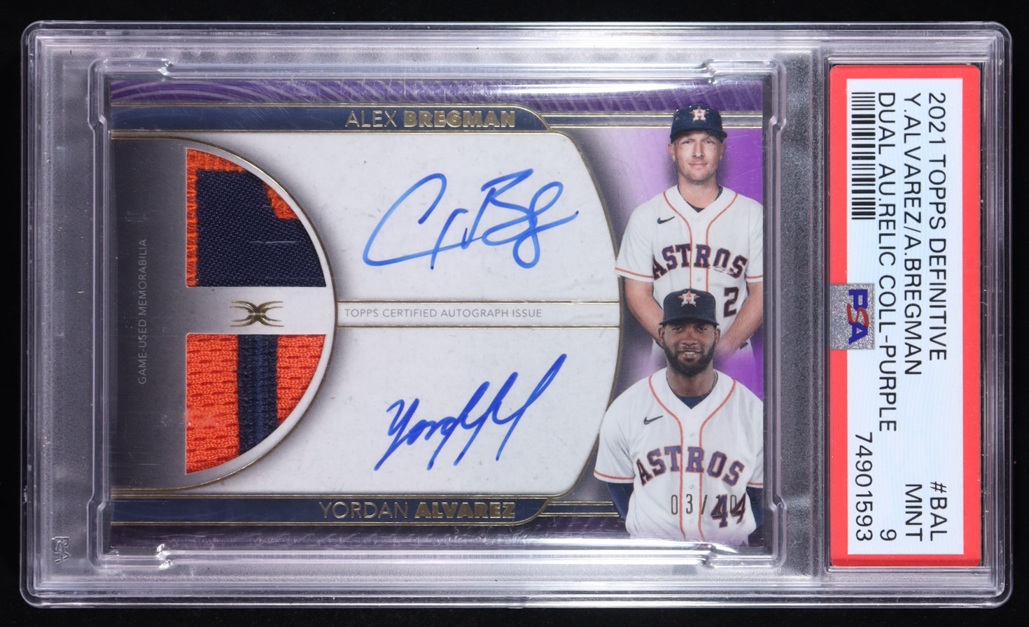 Yordan Alvarez / Alex Bregman 2021 Topps Definitive Collection Dual Autograph Relics Purple #DARBAL #03/10 (PSA 9)
