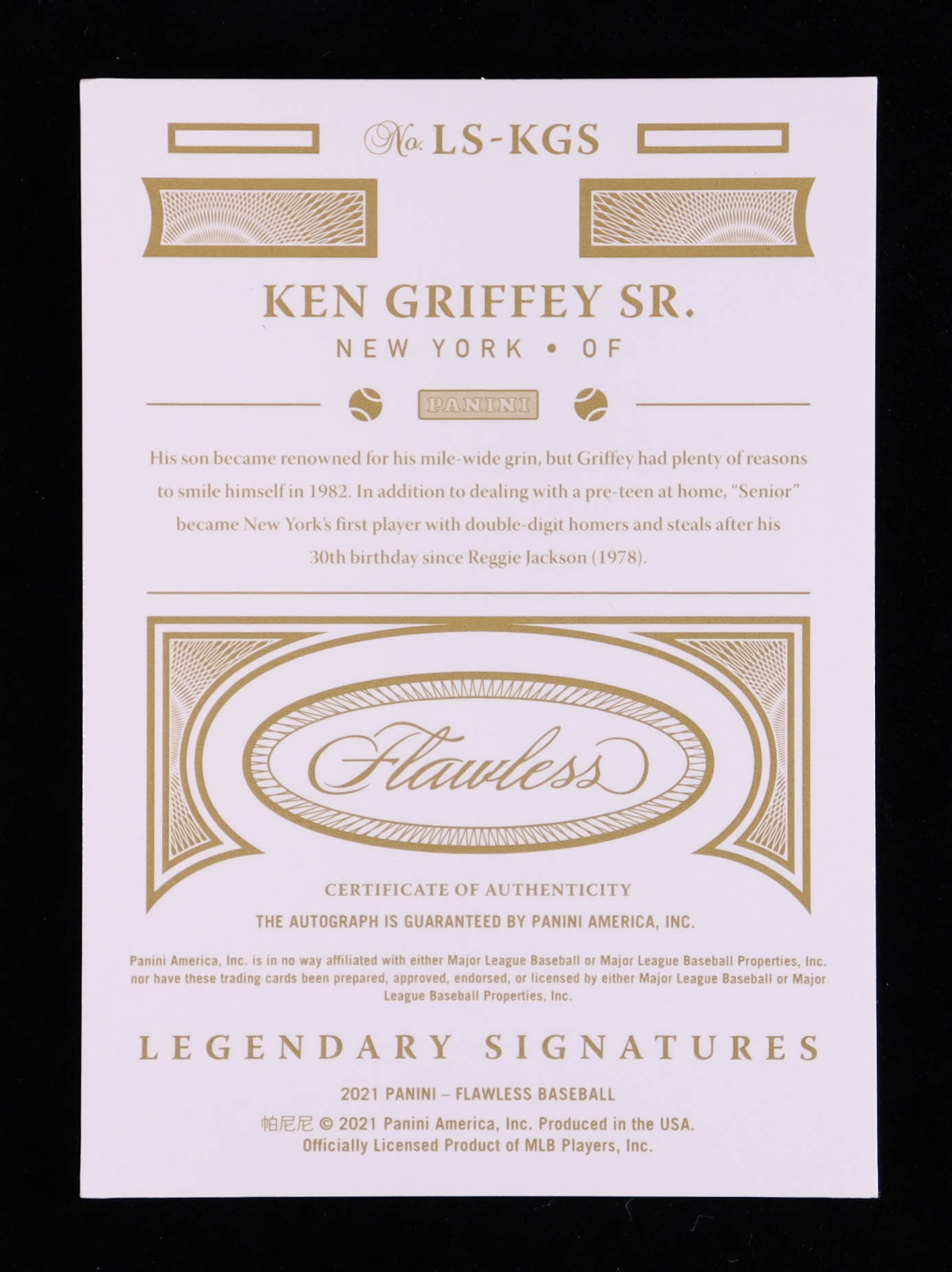 Ken Griffey Sr. 2021 Panini Flawless Legendary Signatures #14 #02/15