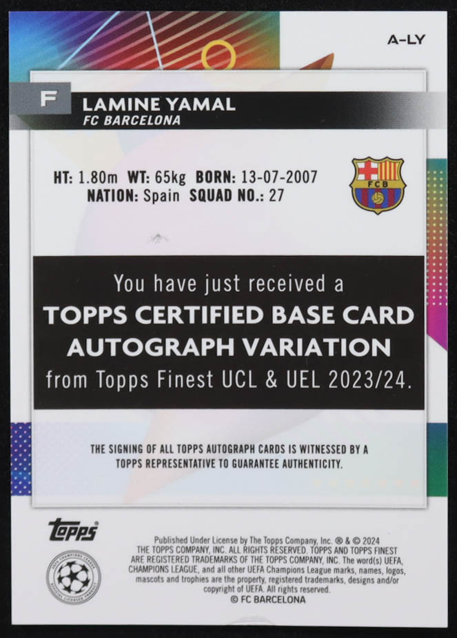 Lamine Yamal 2023-24 Finest UEFA Club Competitions Autographs #ALY RC