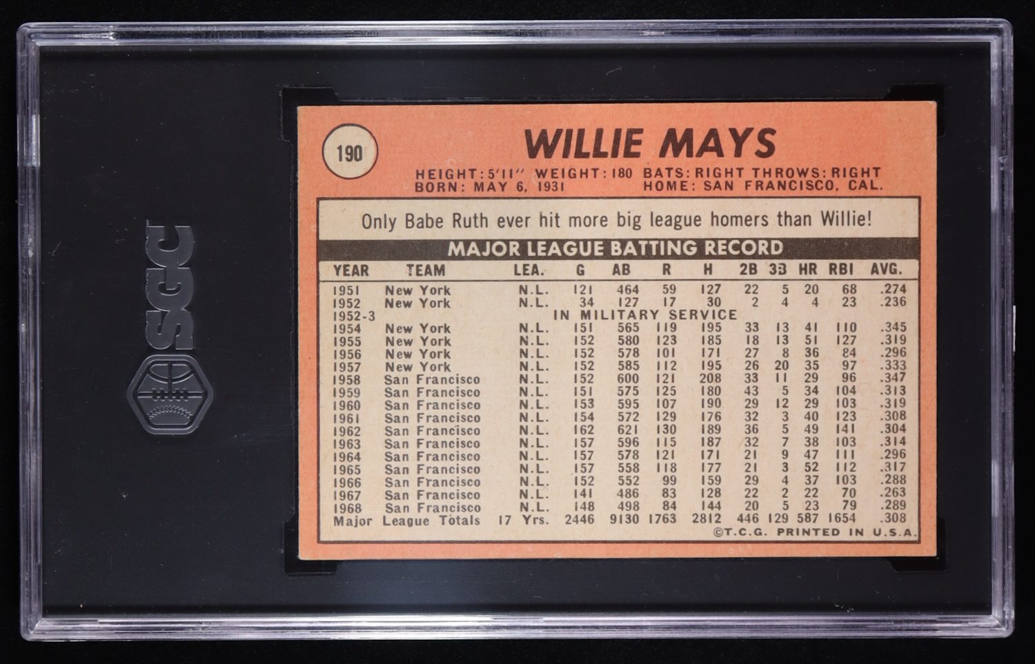 Willie Mays 1969 Topps #190 (SGC 5)