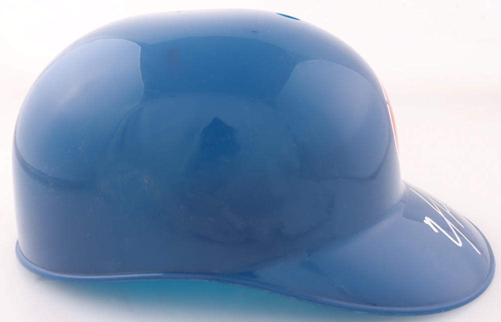 Chicago Cubs replica souvenir full-size batting helmet. Hand-signed by Nico Hoerner.