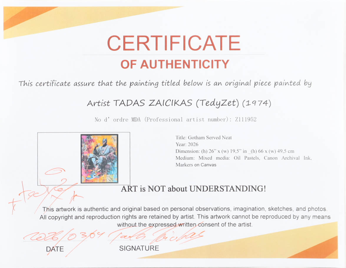 The piece includes an official Tadas Zaicikas COA for authenticity purposes.
