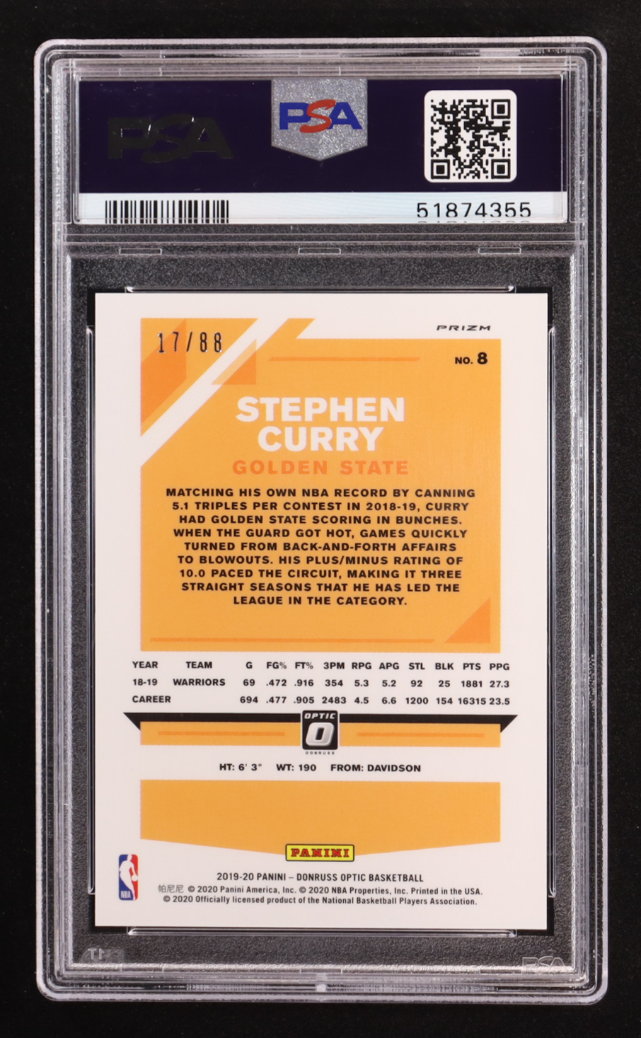 Stephen Curry 2019-20 Donruss Optic Choice Red #8 #17/88 (PSA 9)
