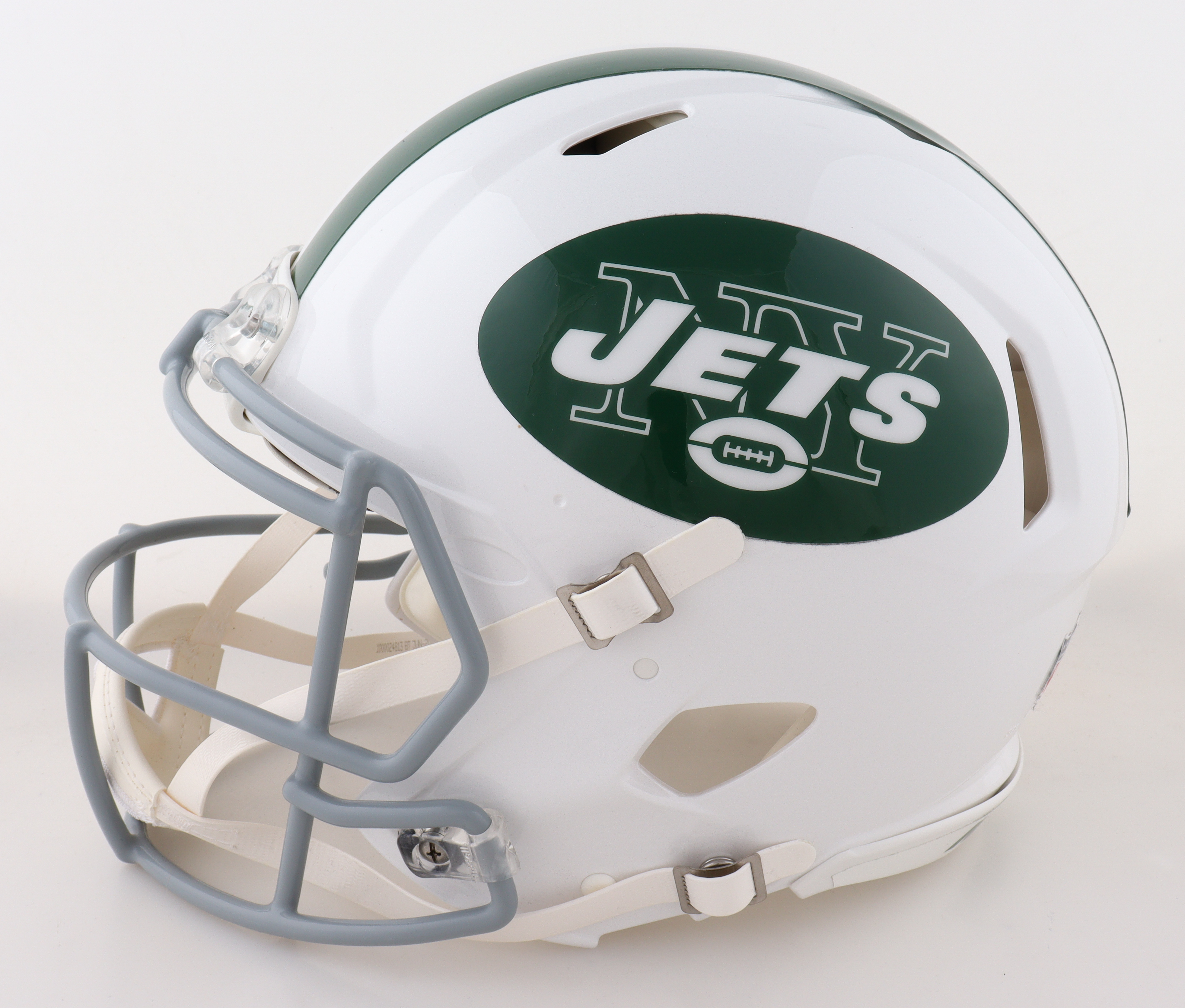 Riddell New York Jets Full-Size Speed Replica Helmet. Hand-signed by Braelon Allen and Breece Hall.