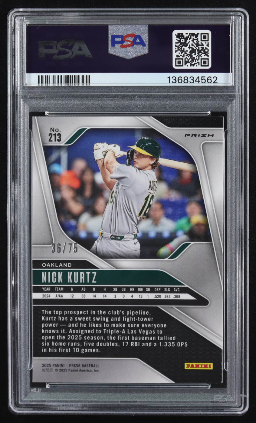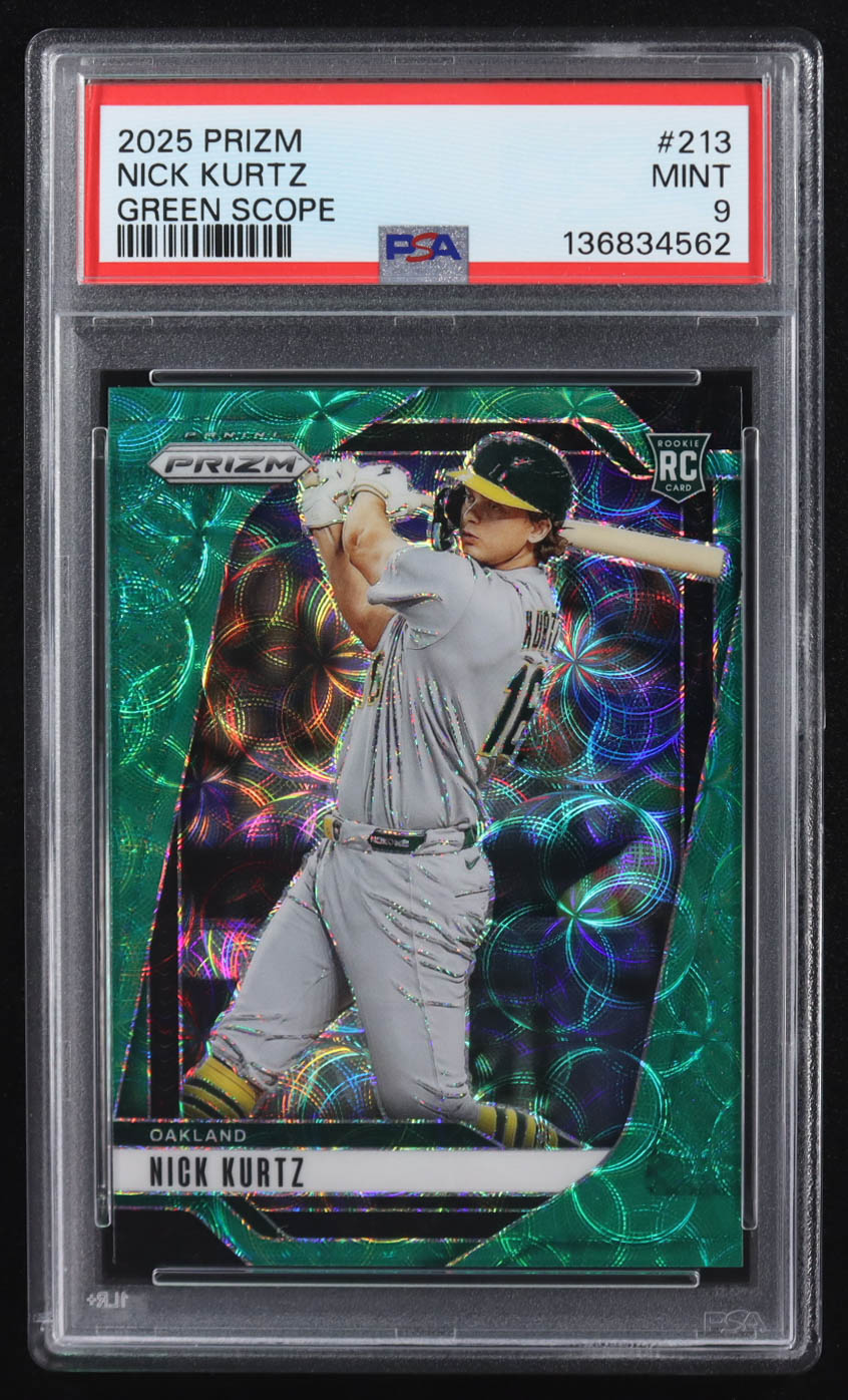 Nick Kurtz 2025 Panini Prizm Prizms Green Scope #213 RC #36/75 (PSA 9)