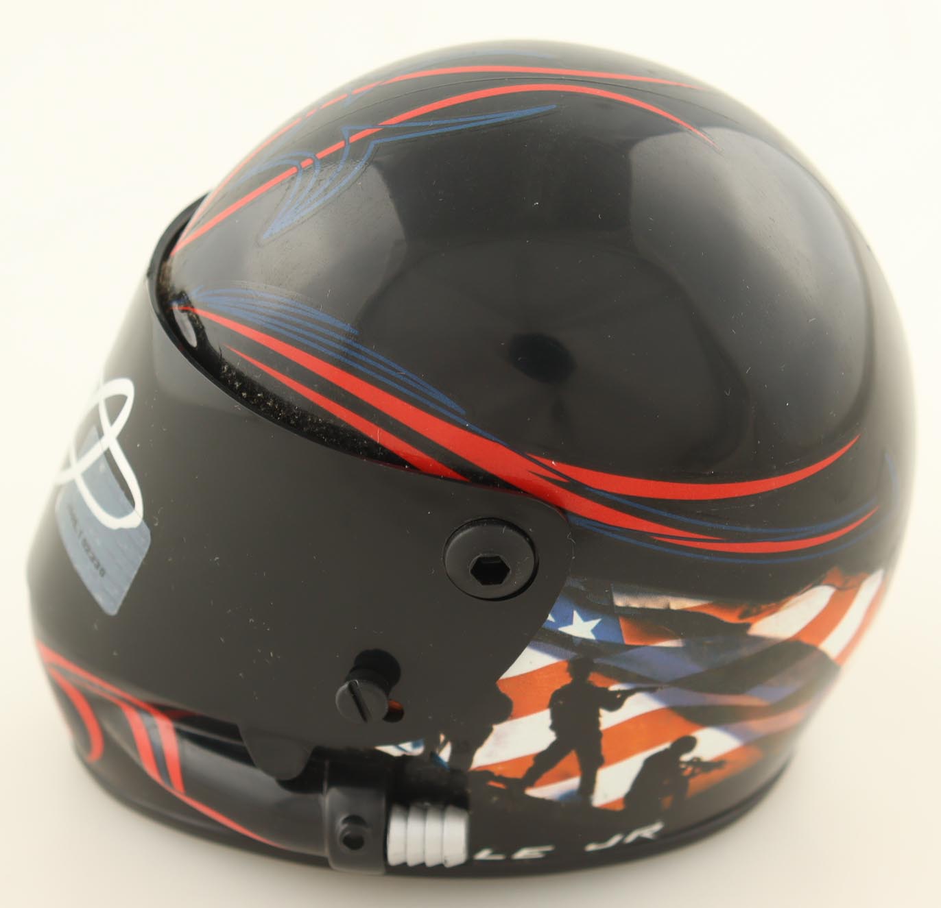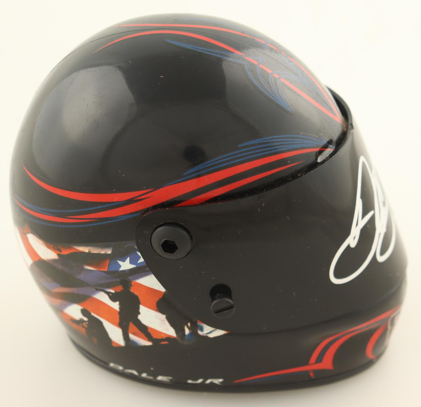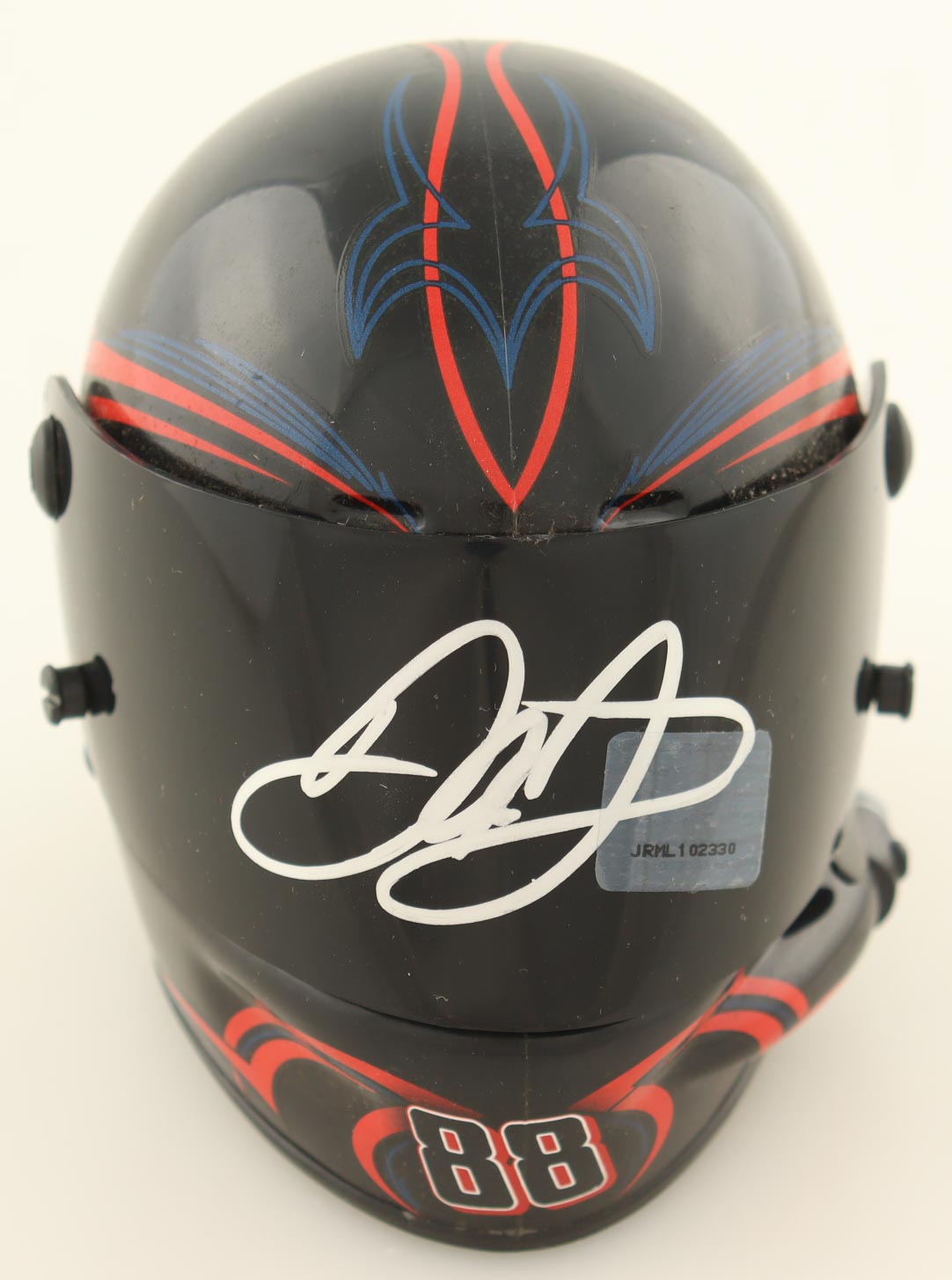 1:4 scale replica NASCAR mini helmet has been hand-signed by driver Dale Earnhardt Jr. (HOF).